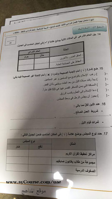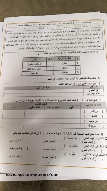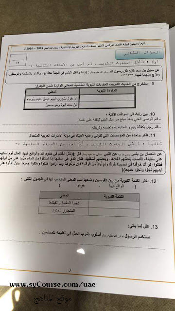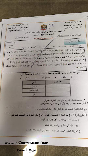 معلومات الملف: الصف السابع, الفصل الثالث, تربية اسلامية, متحان نهاية العام 2016 | ||