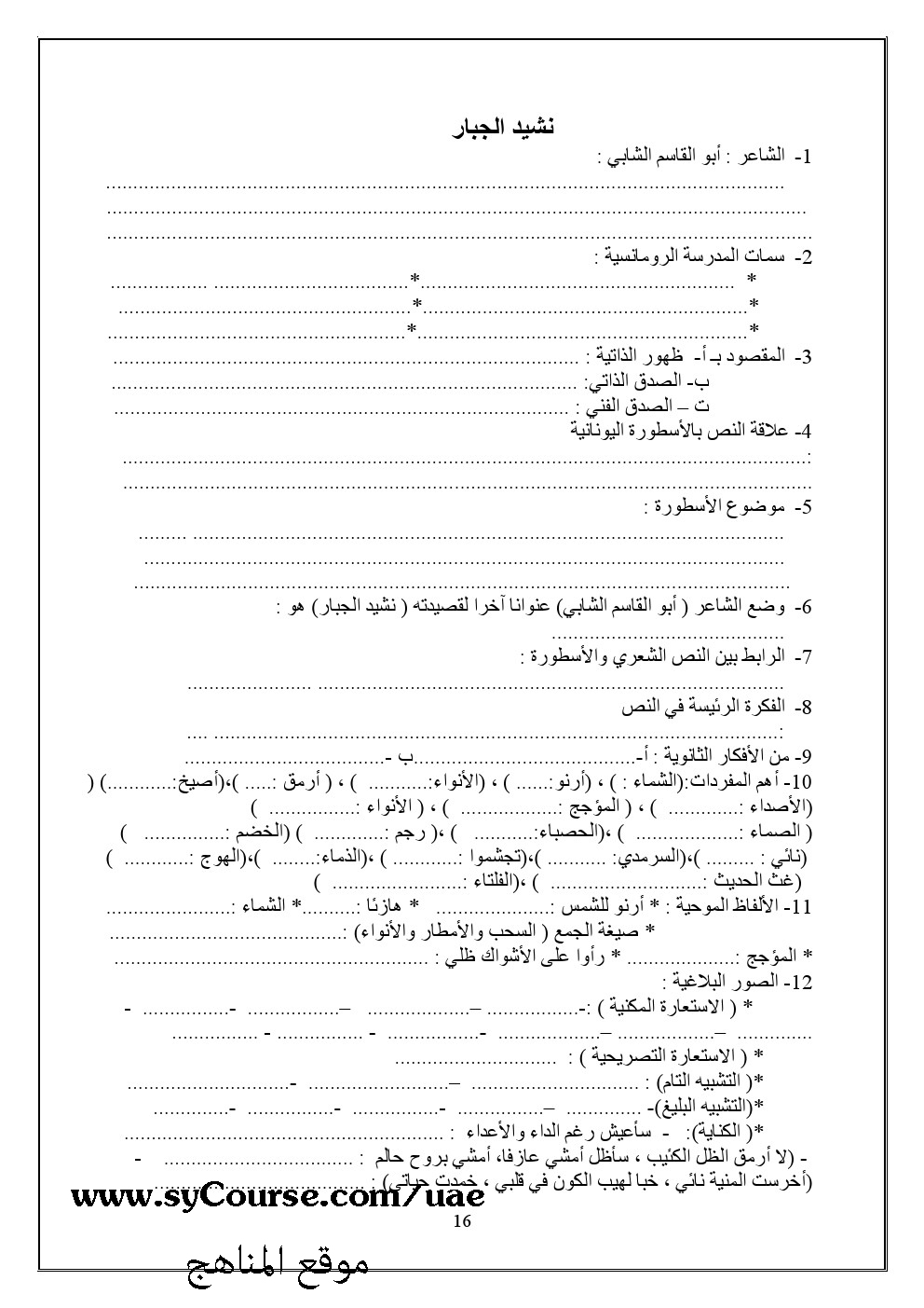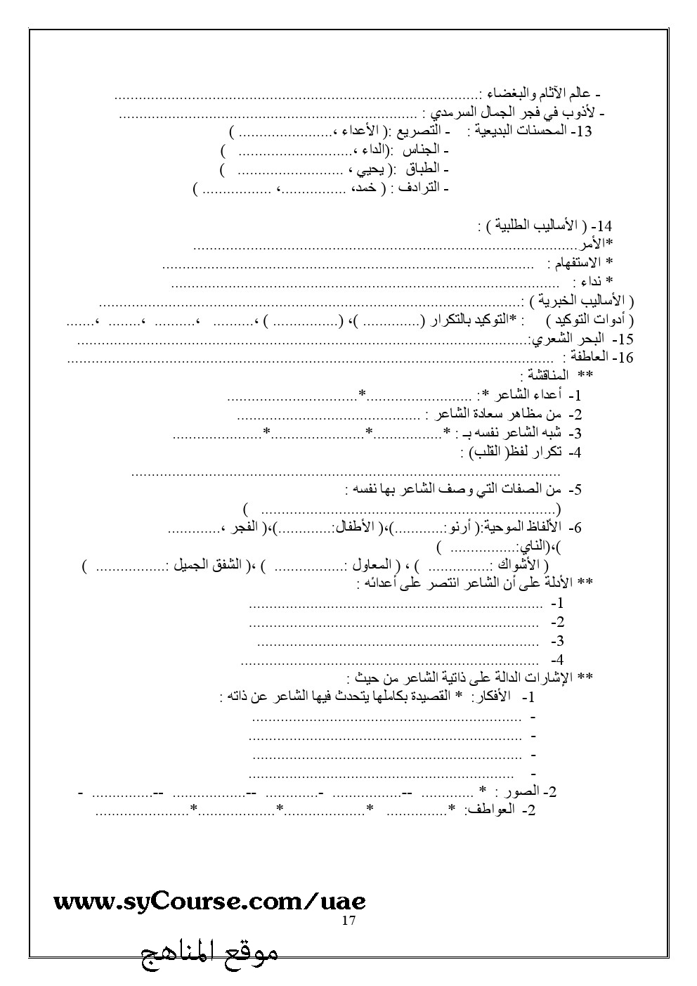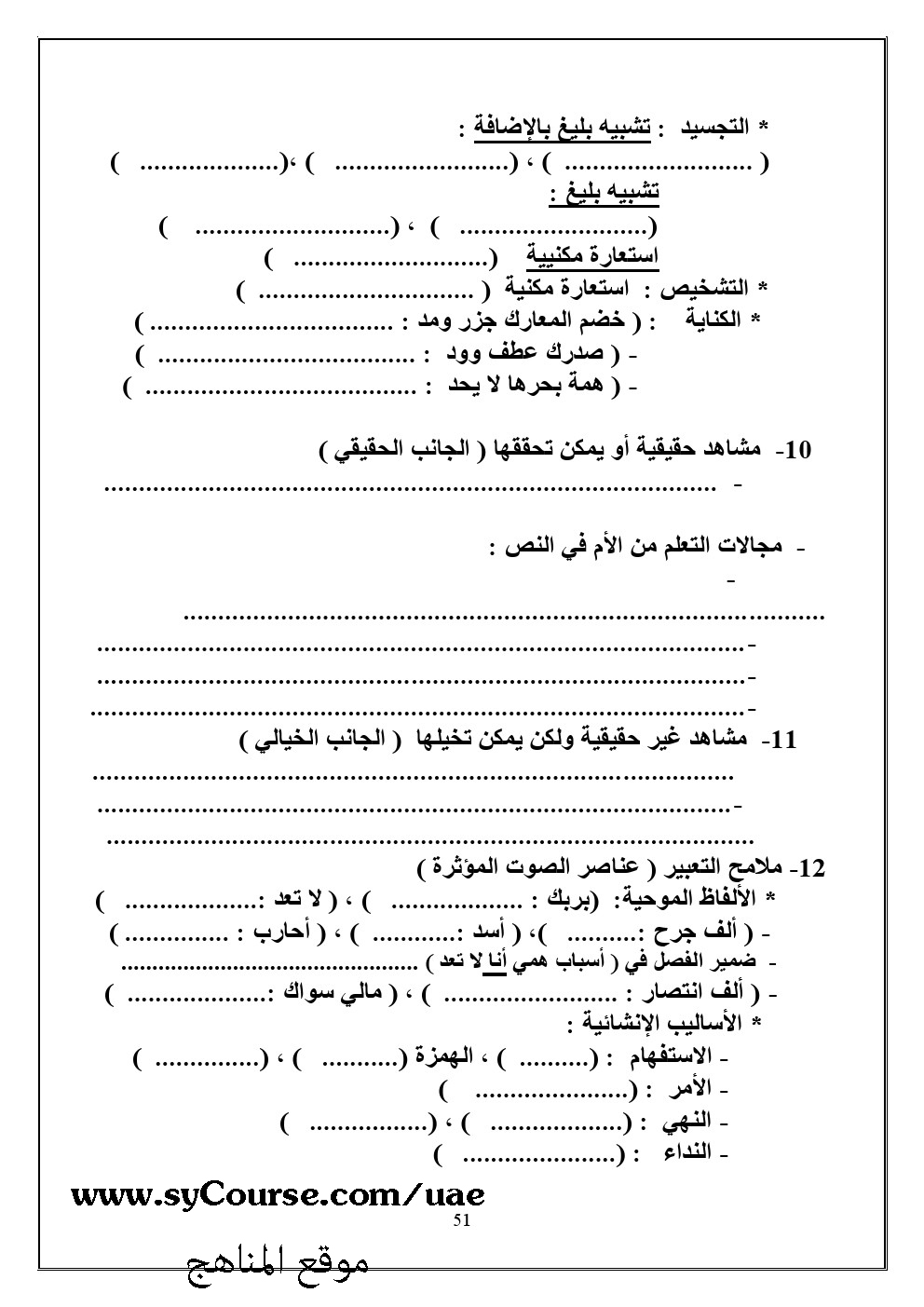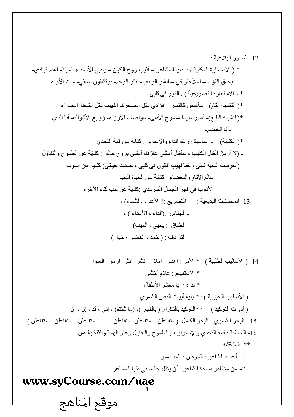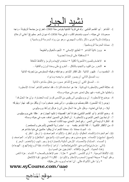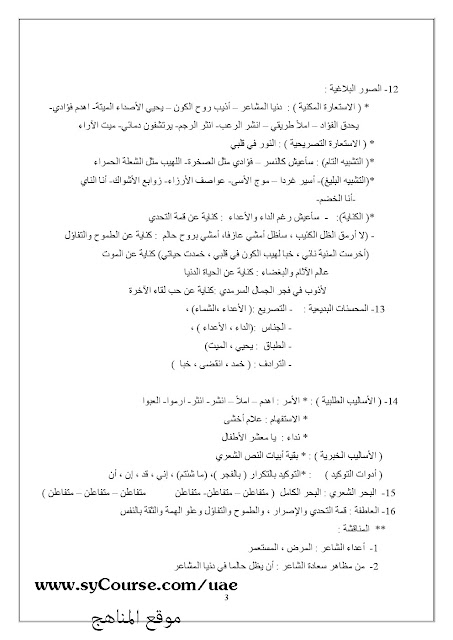 معلومات الملف: الصف الثاني عشر- لغة عربية - مذكرة للعلمي والأدبي | ||