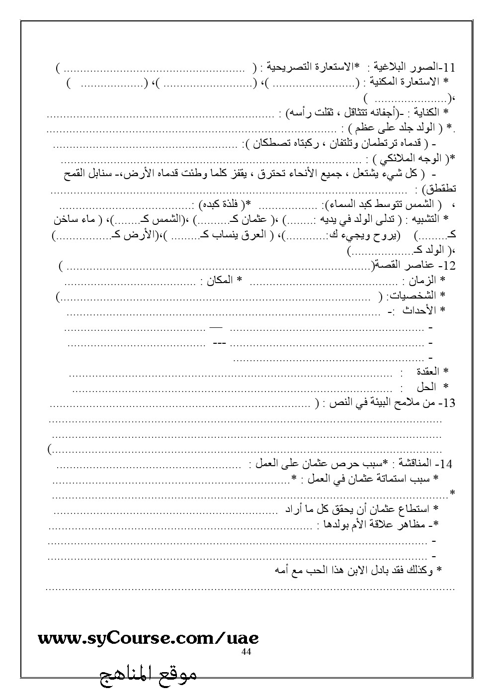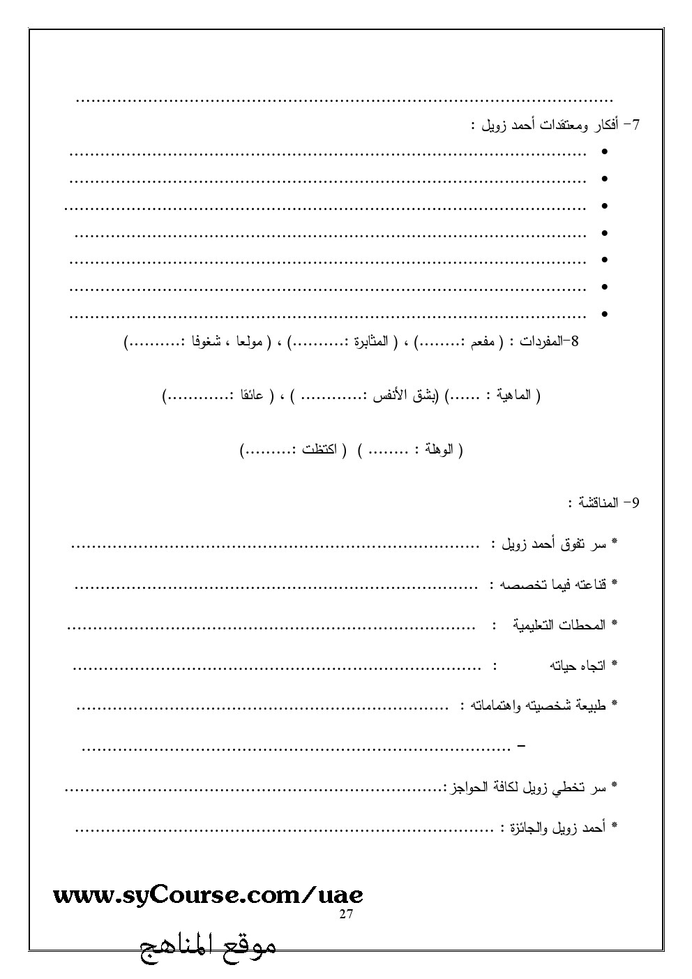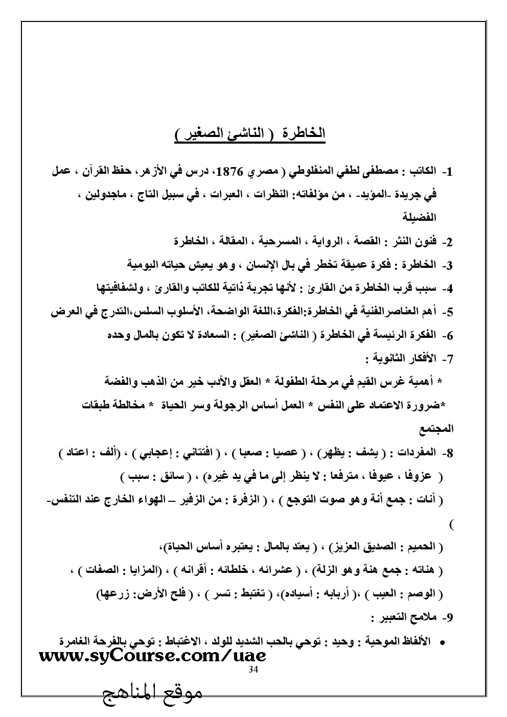 مذكرة للعلمي والأدبي | ||