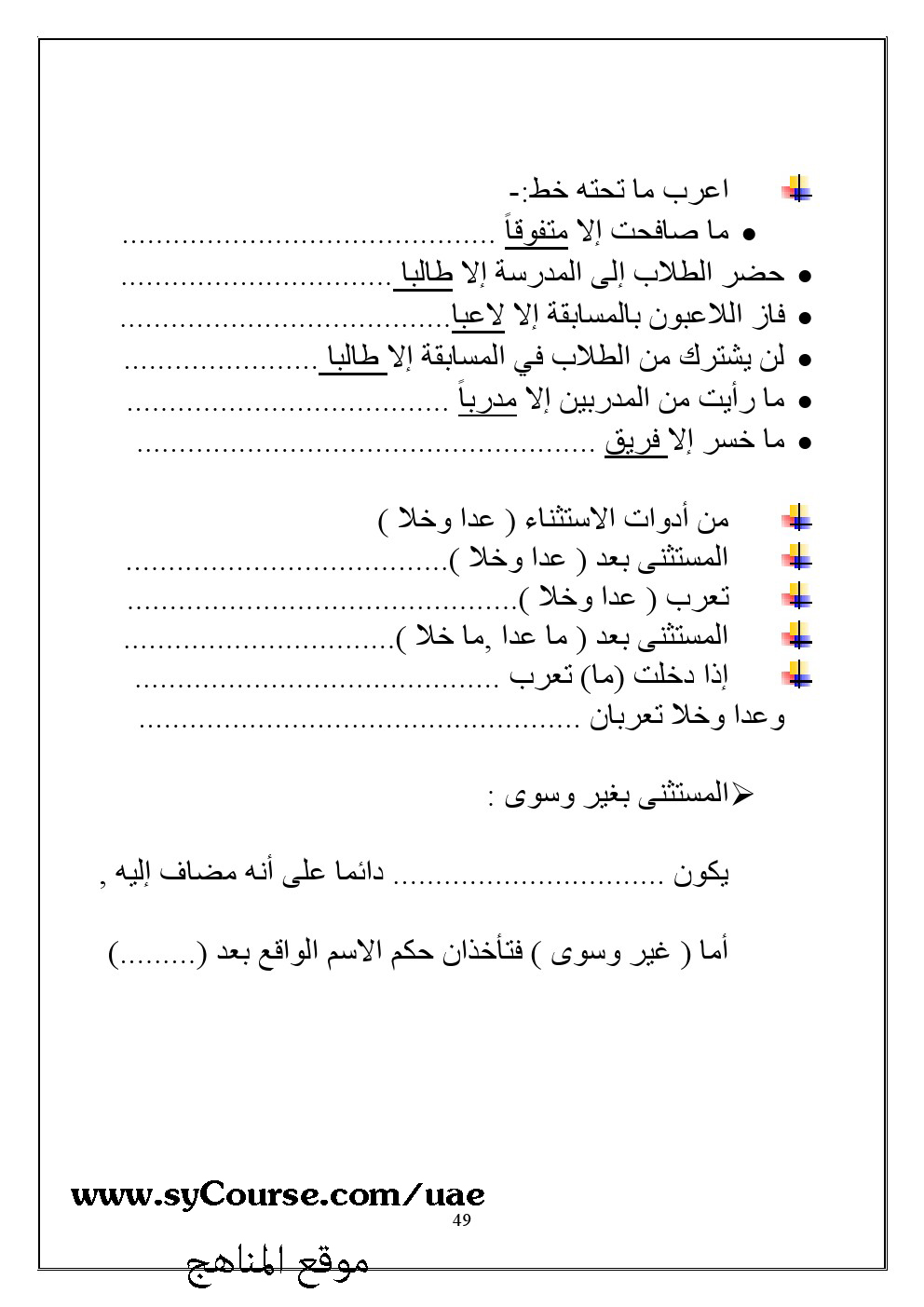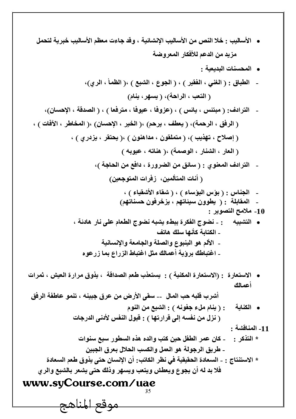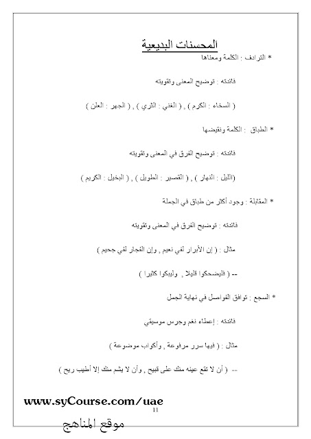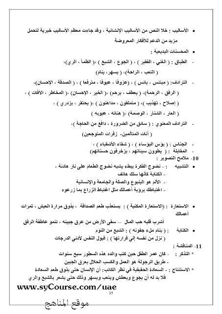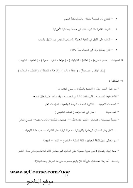 الملاحظات المثبتة في المناهج الإماراتية | |
