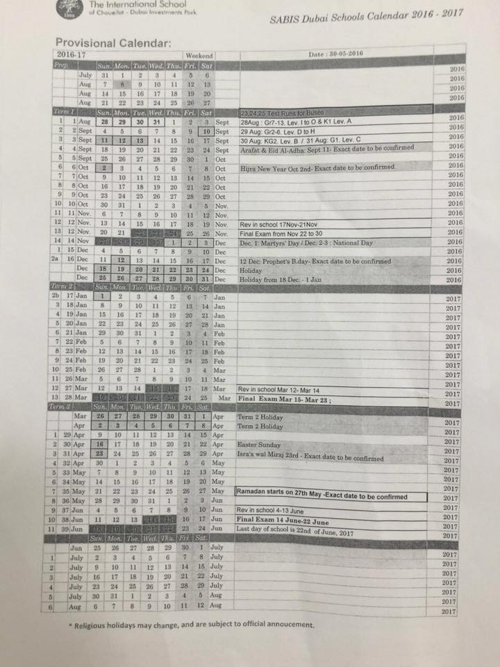 التقويم المدرسي في مدرسة الشويفات الخاصة 2016\2017 (مواعيد بداية العام والعطل) | ||