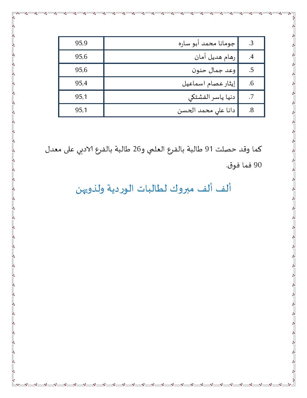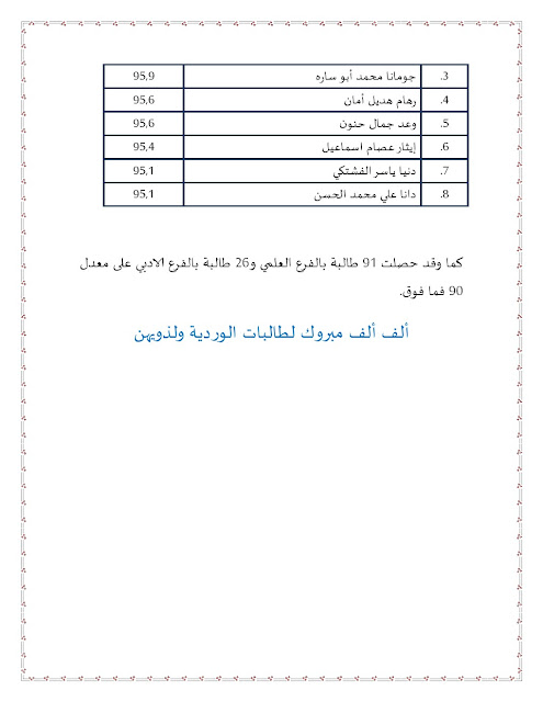 أسماء الطلبة الاوائل في مدرسة الوردية- أبو ظبي للعام الدراسي 2015\2016 | |||