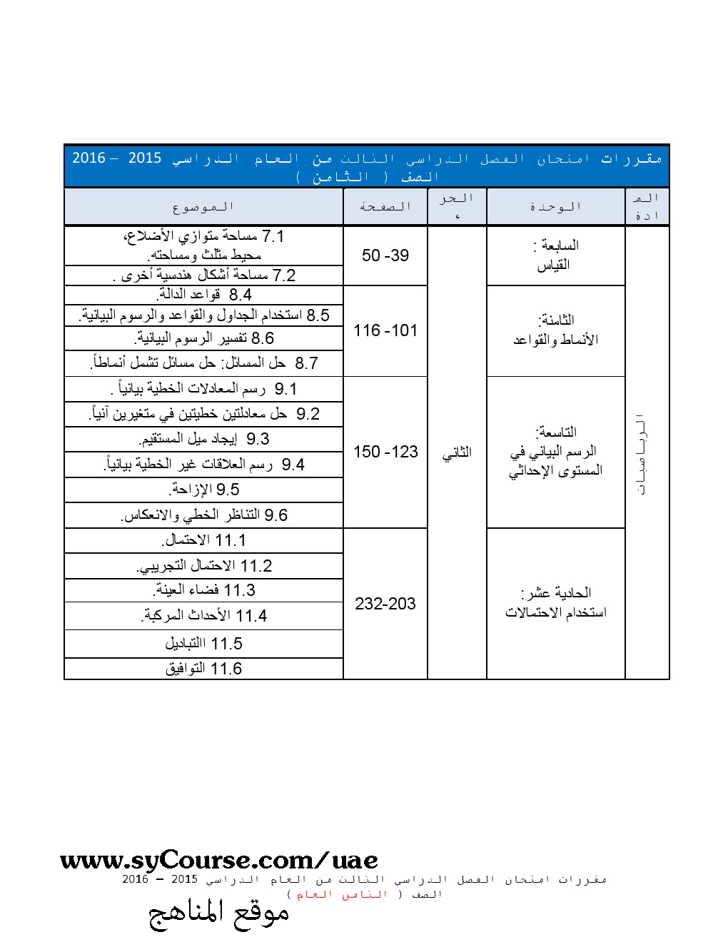 | أنت هنا: موقع المناهج ⇦ المناهج الإماراتية ⇦ أخبار ⇦ الامتحانات ⇦ الفصل الأول ⇦ الامتحان النهائي |