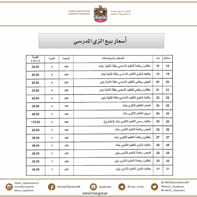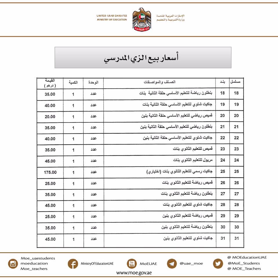 | أسعار بيع الزي المدرسي في جميع الامارات 2016\2017 | ||