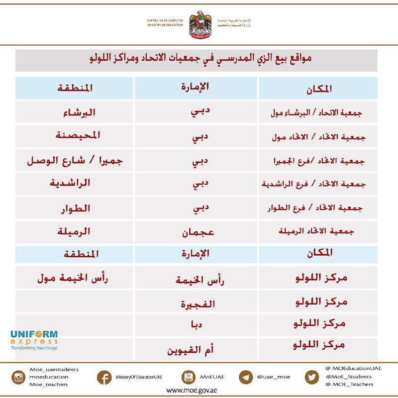 مواقع بيع الزي المدرسي في جميعات الاتحاد ومراكز اللولو 20017 | ||