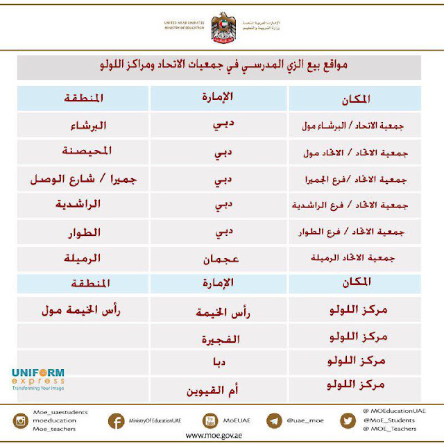 مواقع بيع الزي المدرسي في جميعات الاتحاد ومراكز اللولو 20017, أخبار, أخبار, الفصل الأول, 2018-2019 | ||
