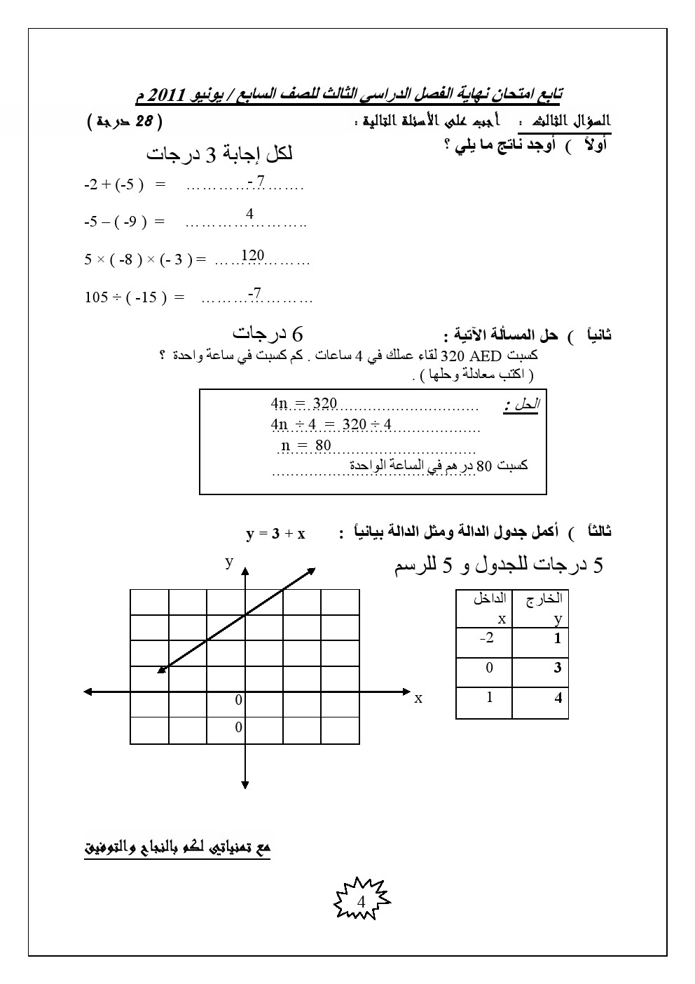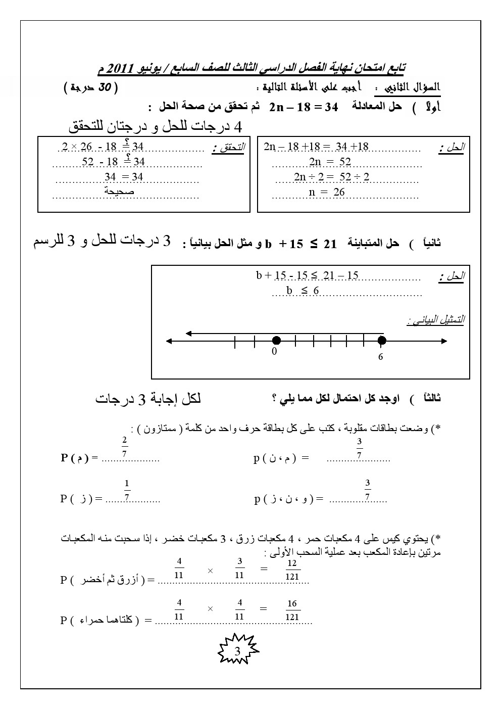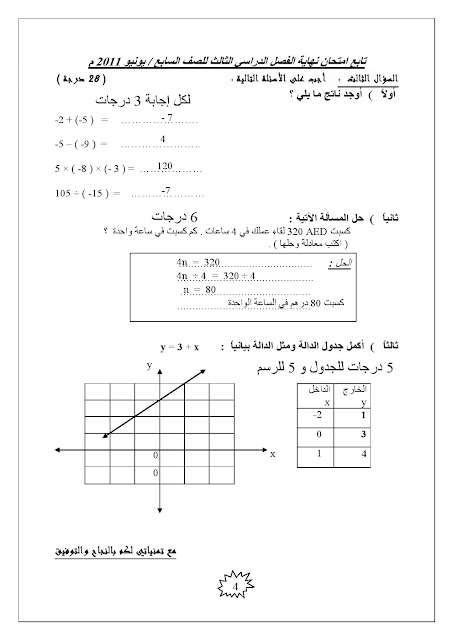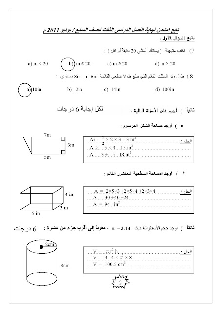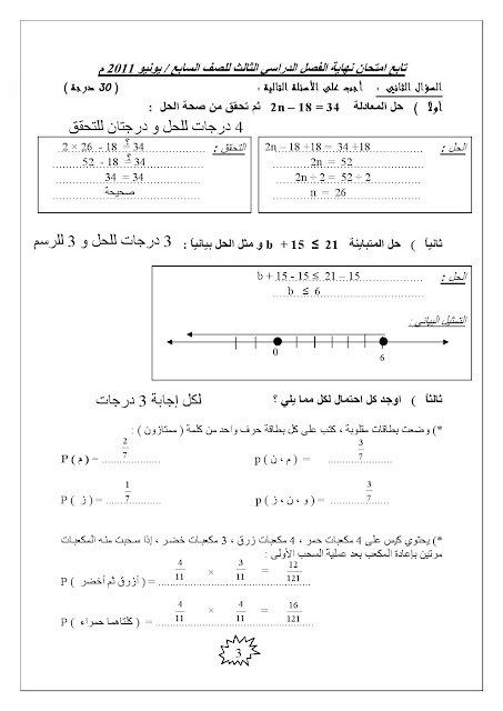 | امتحان نهاية العام 2011 مع الحل | ||
