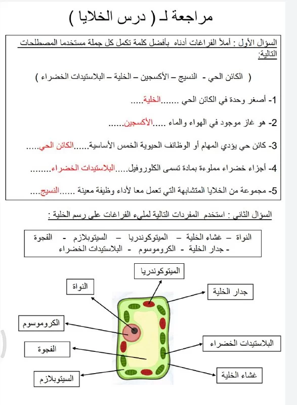 معلومات الملف: نرفق لكم ملف يتضمن حل أسئلة مراجعة درس الخلايا من مادة العلوم للصف الرابع الفصل الدراسي الأول للعام الدراسي 2022-2023