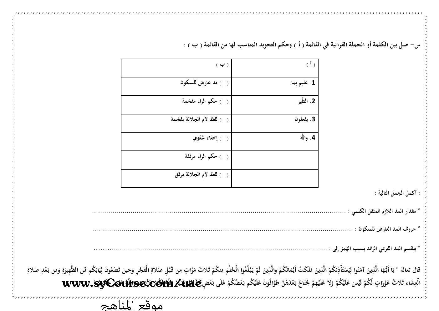 | المادة: تربية اسلامية | ||
