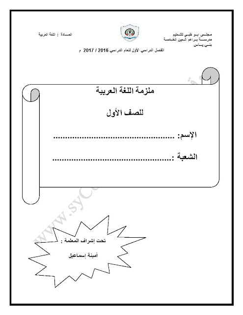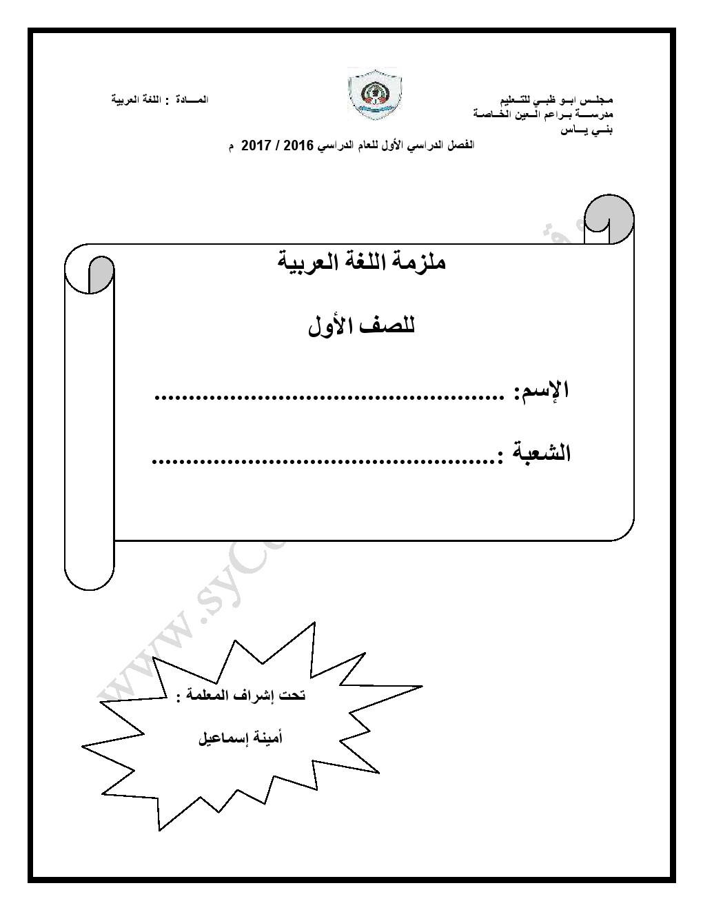 معلومات الملف: الصف الأول, الفصل الأول, لغة عربية, ملزمة العام الدراسي 2016-2017 | ||