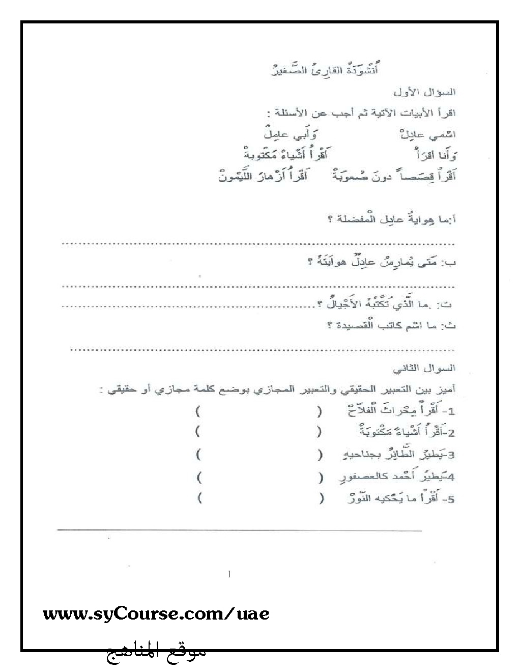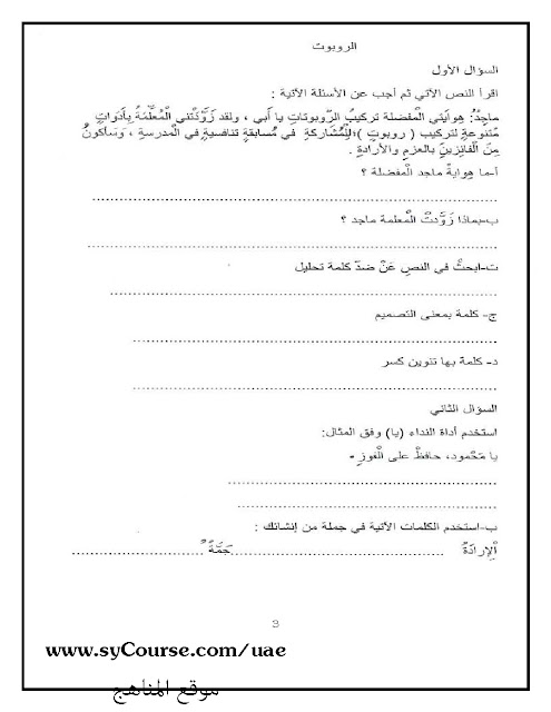 أنت هنا: موقع المناهج ⇦ المناهج الإماراتية ⇦ الصف الثالث ⇦ لغة عربية ⇦ الفصل الأول ⇦ أوراق عمل |
