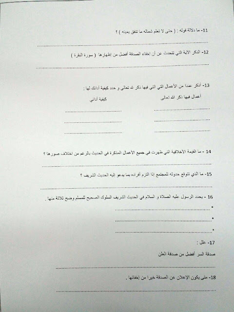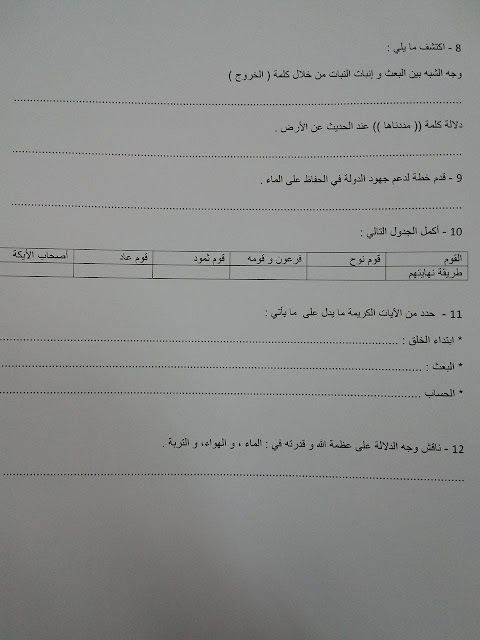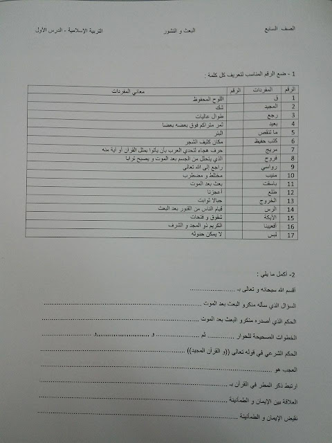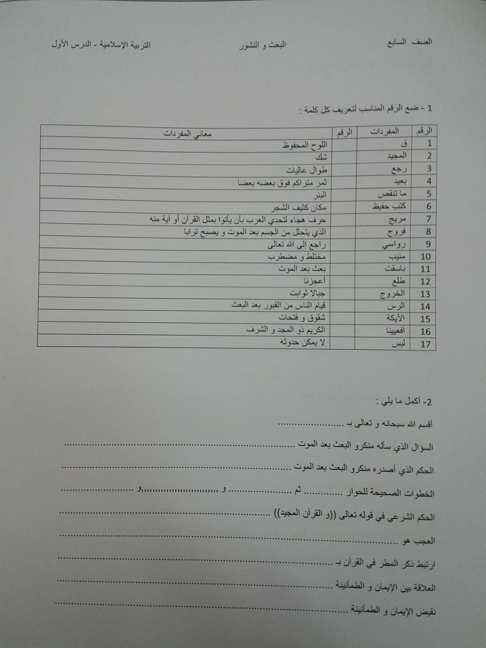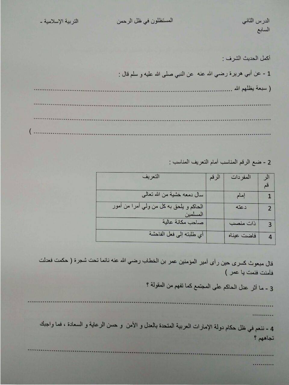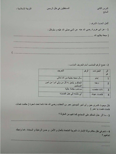 الصف السابع- تربية اسلامية- أوراق عمل 2016-2017 وفق المنهاج الاماراتي الحديث |