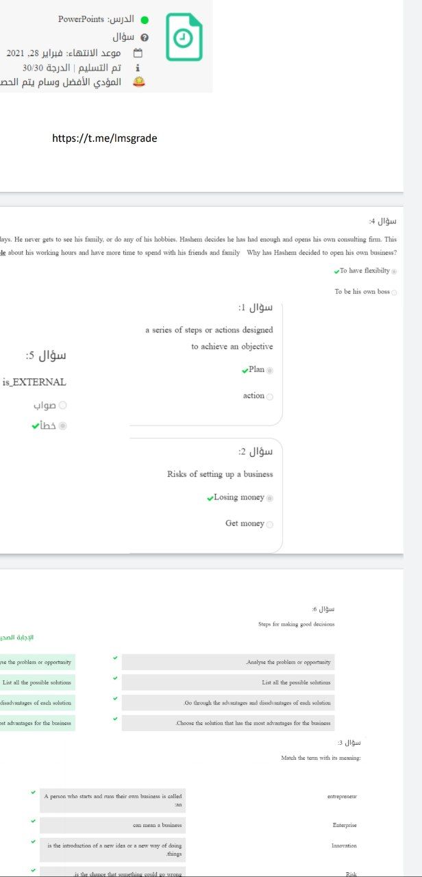 يحتوي الملف المرفقQuiz 1 ( Business ) في مادة اللغة الإنجليزية للصف التاسع للفصل الثاني