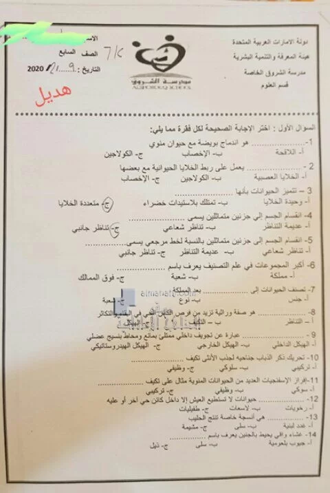 | ورقة عمل الوحدة السابعة (ما الحيوانات) | ||