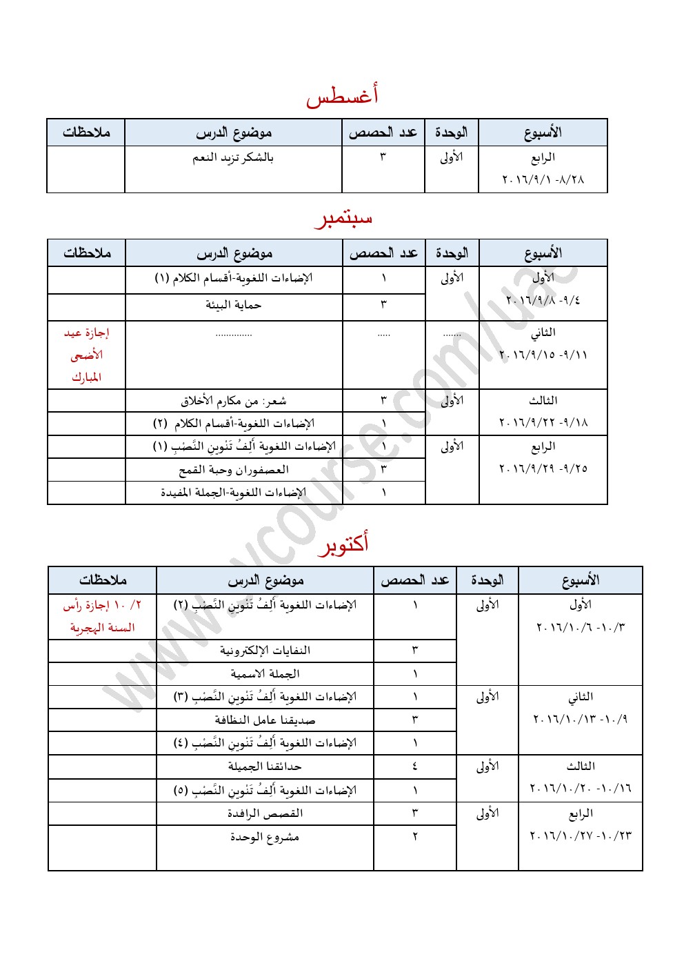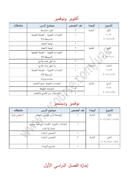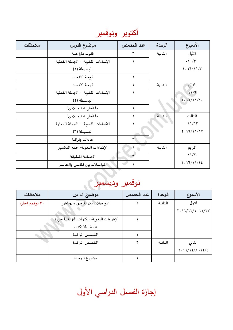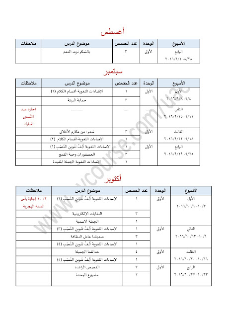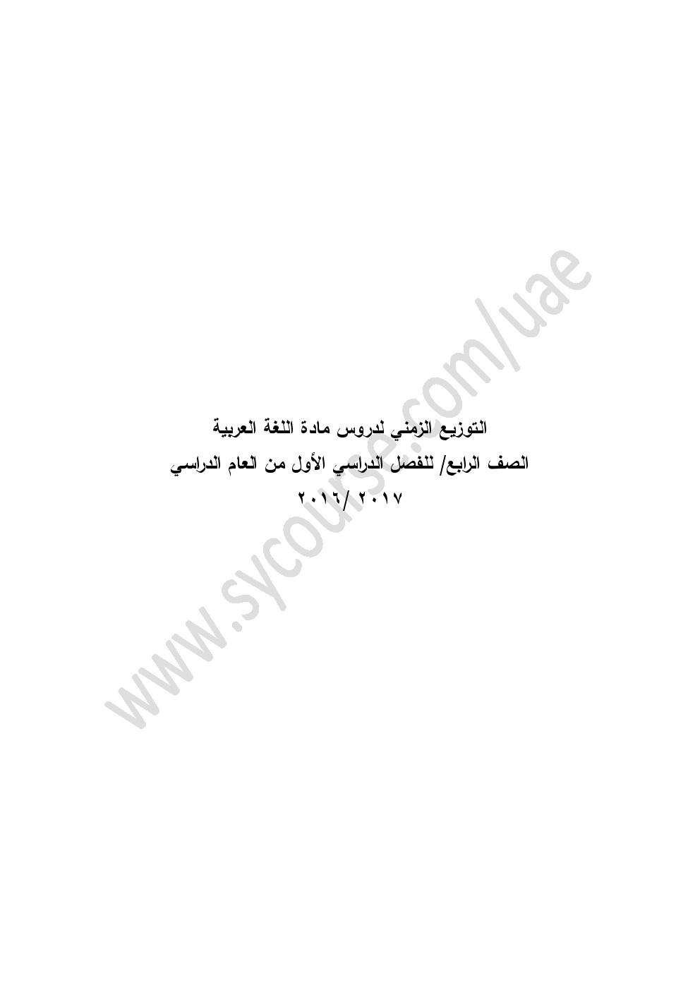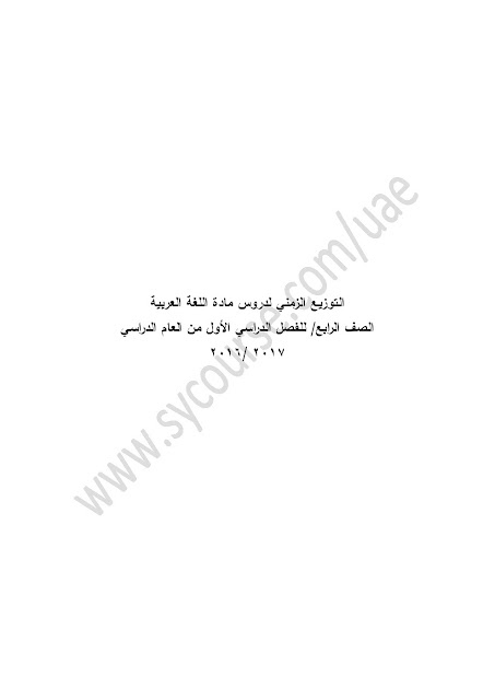 الصف الرابع- لغة عربية- التوزع الزمني لدروس اللغة العربية 2016-2017 وفق المنهاج الاماراتي: