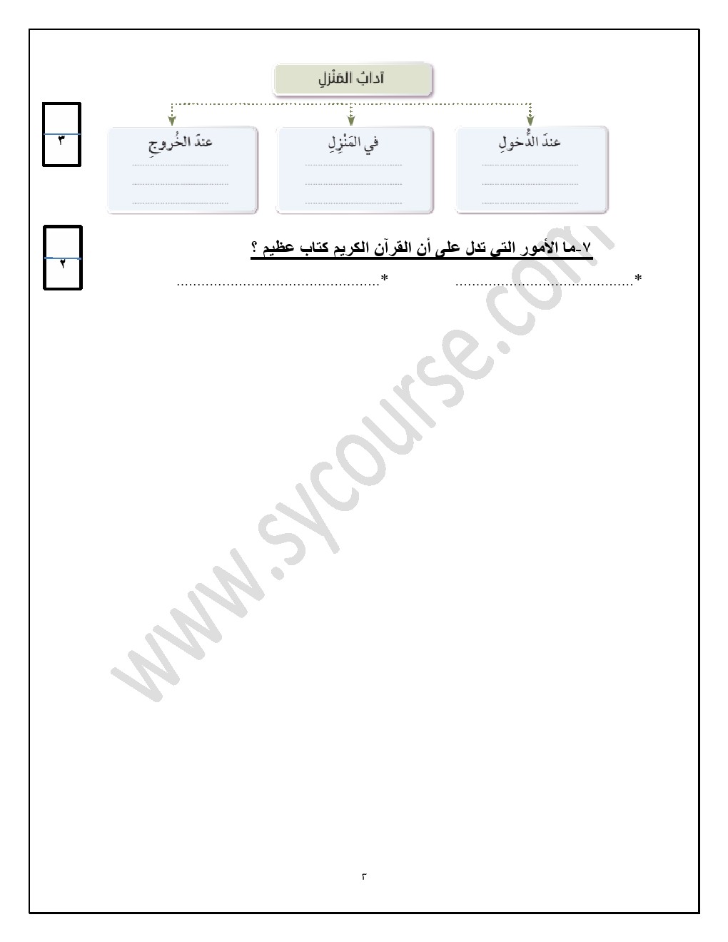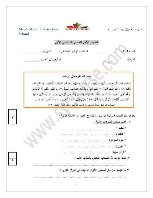 الصف الرابع- الفصل الأول- تربية اسلامية - الاختبار الأول 2016-2017 وفق المنهاج الاماراتي