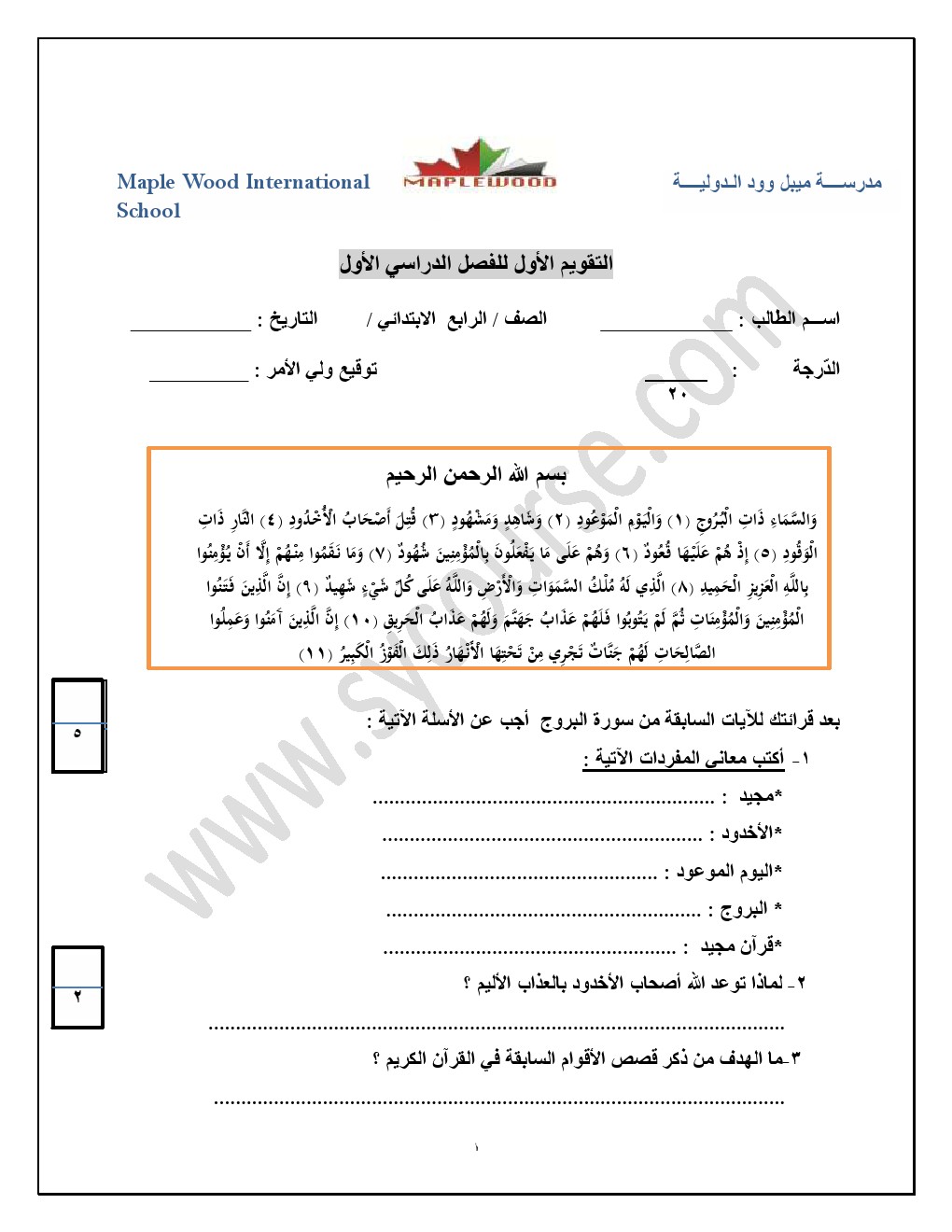 معلومات الملف: الصف الرابع, الفصل الأول, تربية اسلامية, - الاختبار الأول 2016-2017 | ||