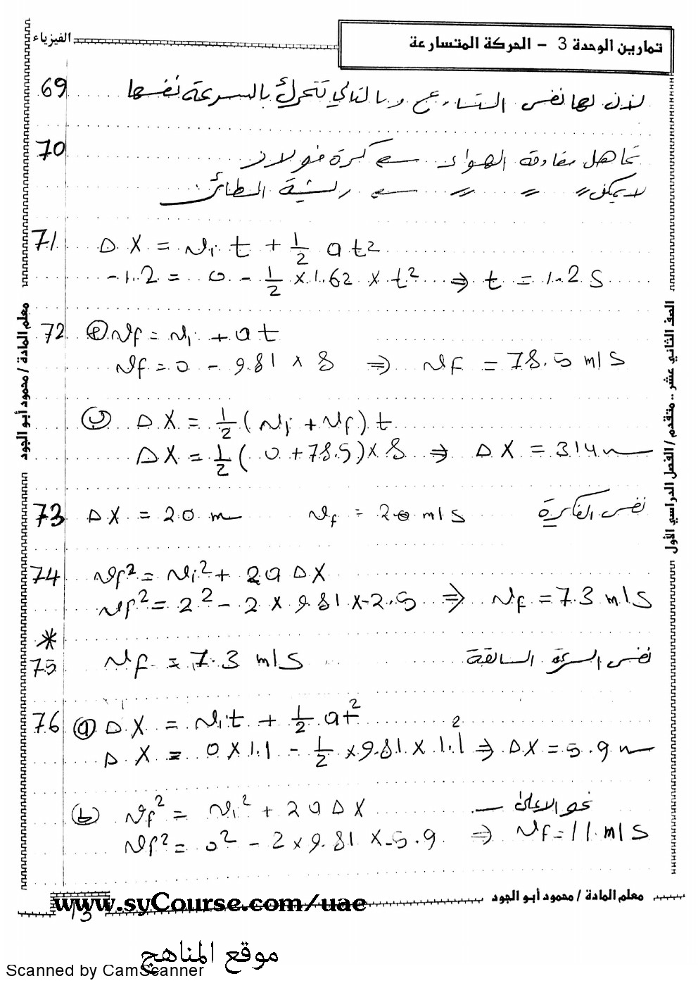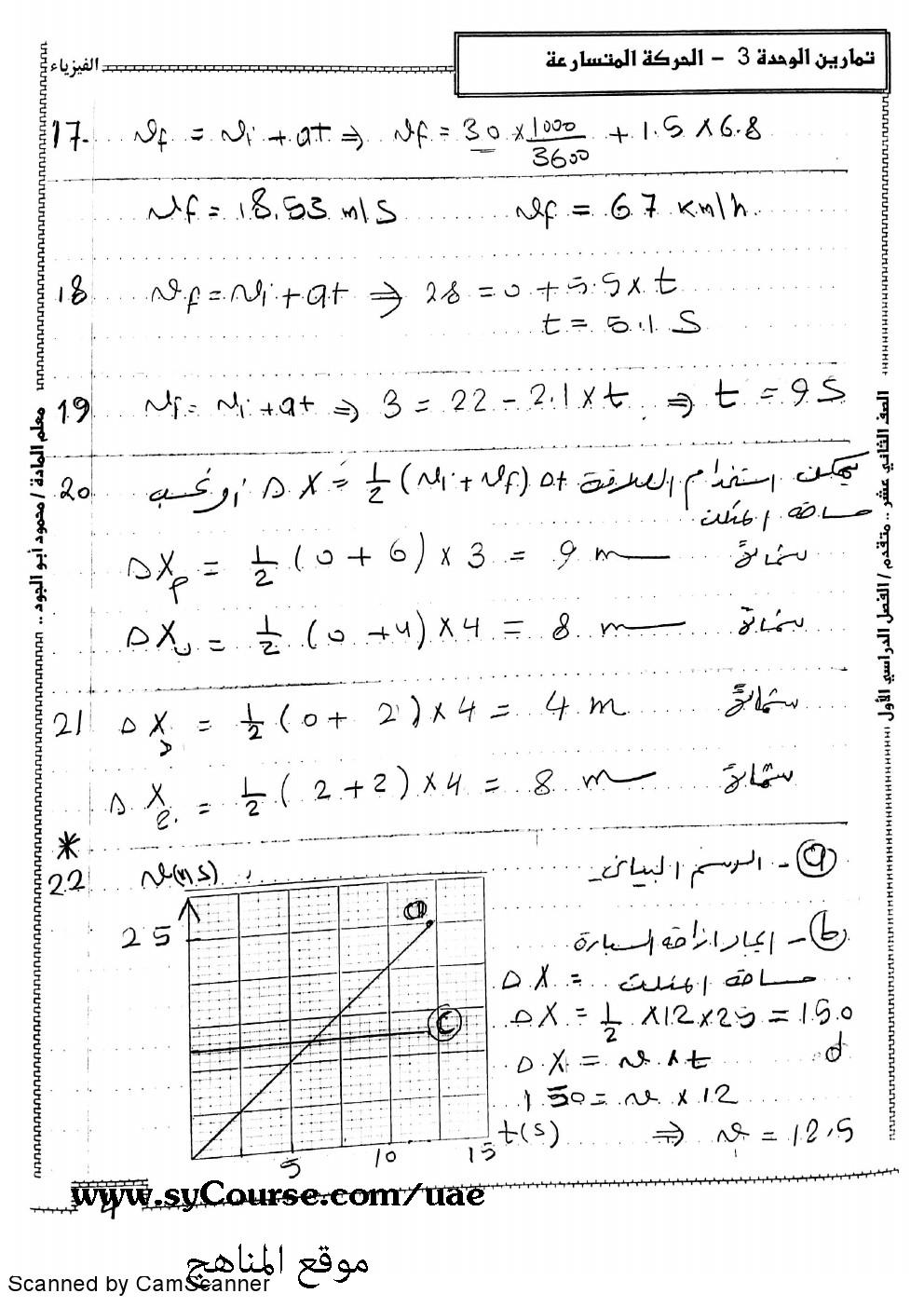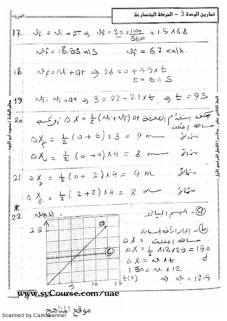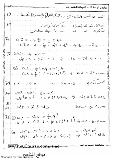| متقدم حل الوحدة الثالثة الحركة المتسارعة | ||