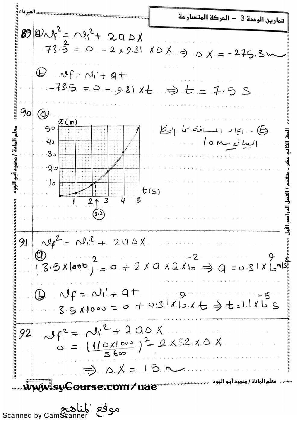 معلومات الملف: الصف الحادي عشر متقدم- فيزياء- حل الوحدة الثالثة - الحركة المتسارعة 2016-2017 | ||