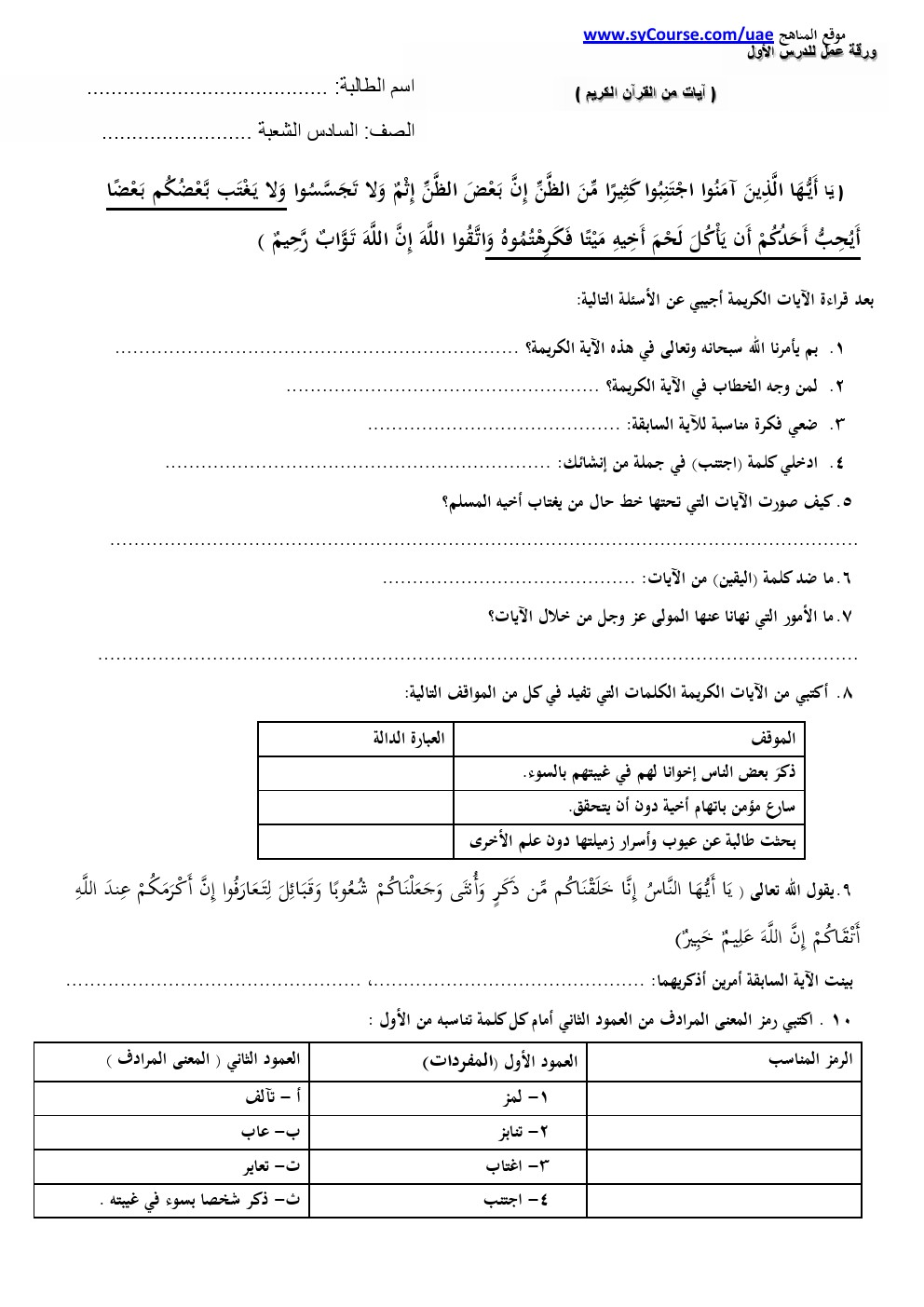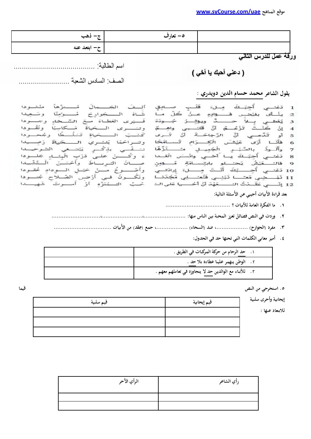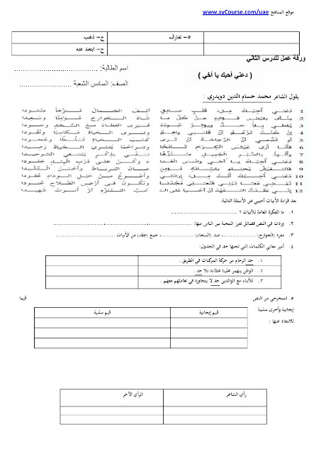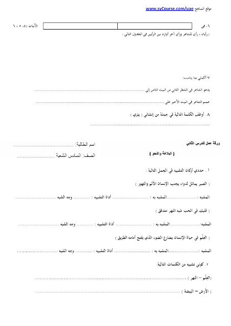 | أنت هنا: موقع المناهج ⇦ المناهج الإماراتية ⇦ الصف السادس ⇦ لغة عربية ⇦ الفصل الأول ⇦ أوراق عمل |