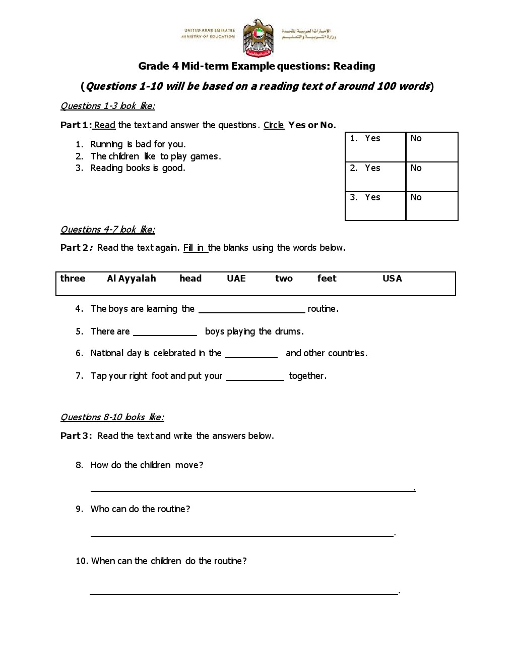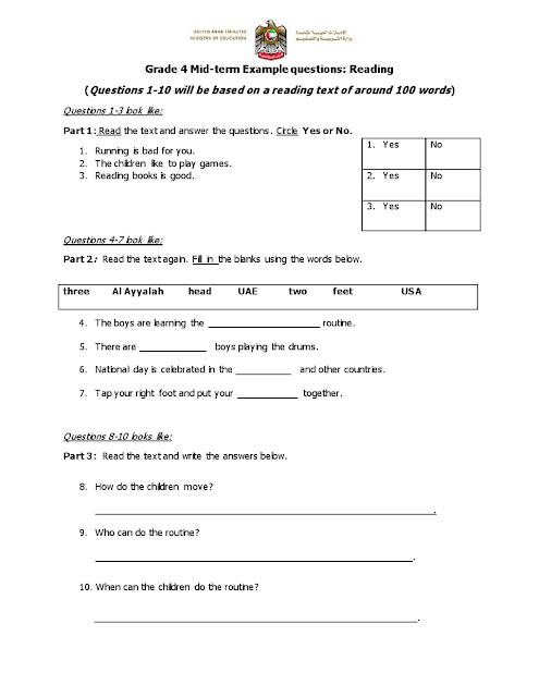الصف الرابع-لغة انكليزية - نموذج رسمي لامتحان الفصل الأول 2016-2017 وفق المنهاج الاماراتي الحديث