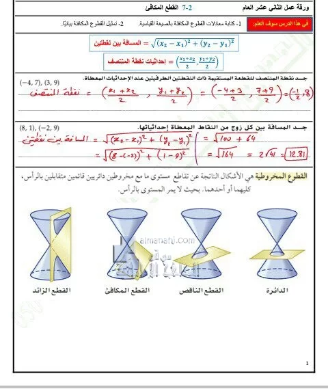 تم إيجاد الملف: ورقة عمل القطع المكافئ مع الحل