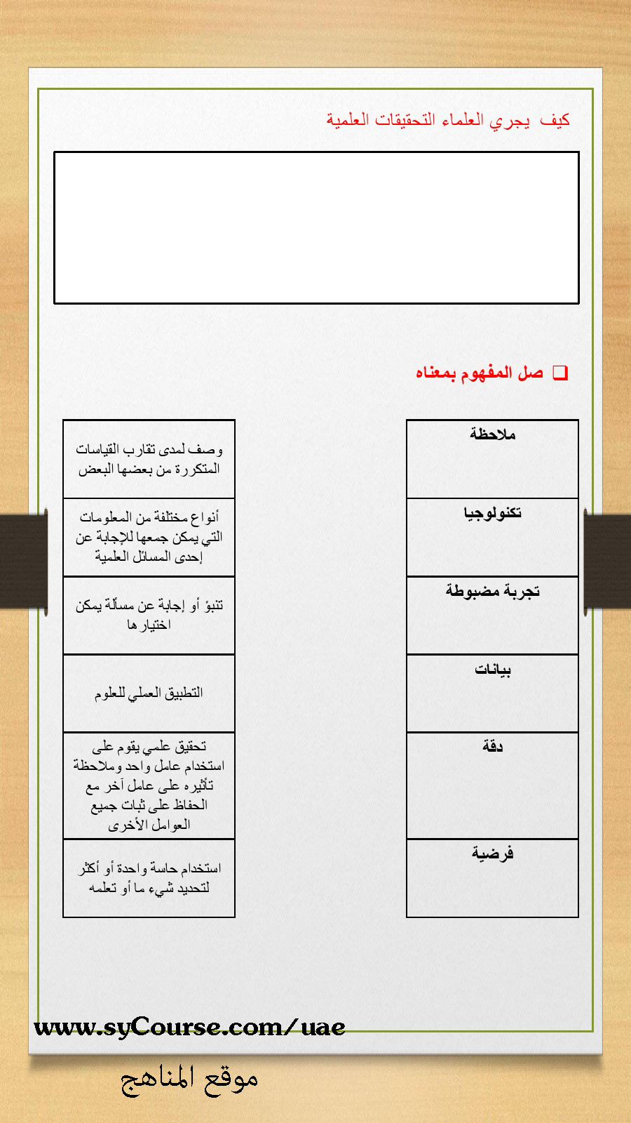 الصف الخامس-الفصل الأول- علوم- ورقة عمل (كيف تصبح عالماً) 2016-2017المنهاج الاماراتي