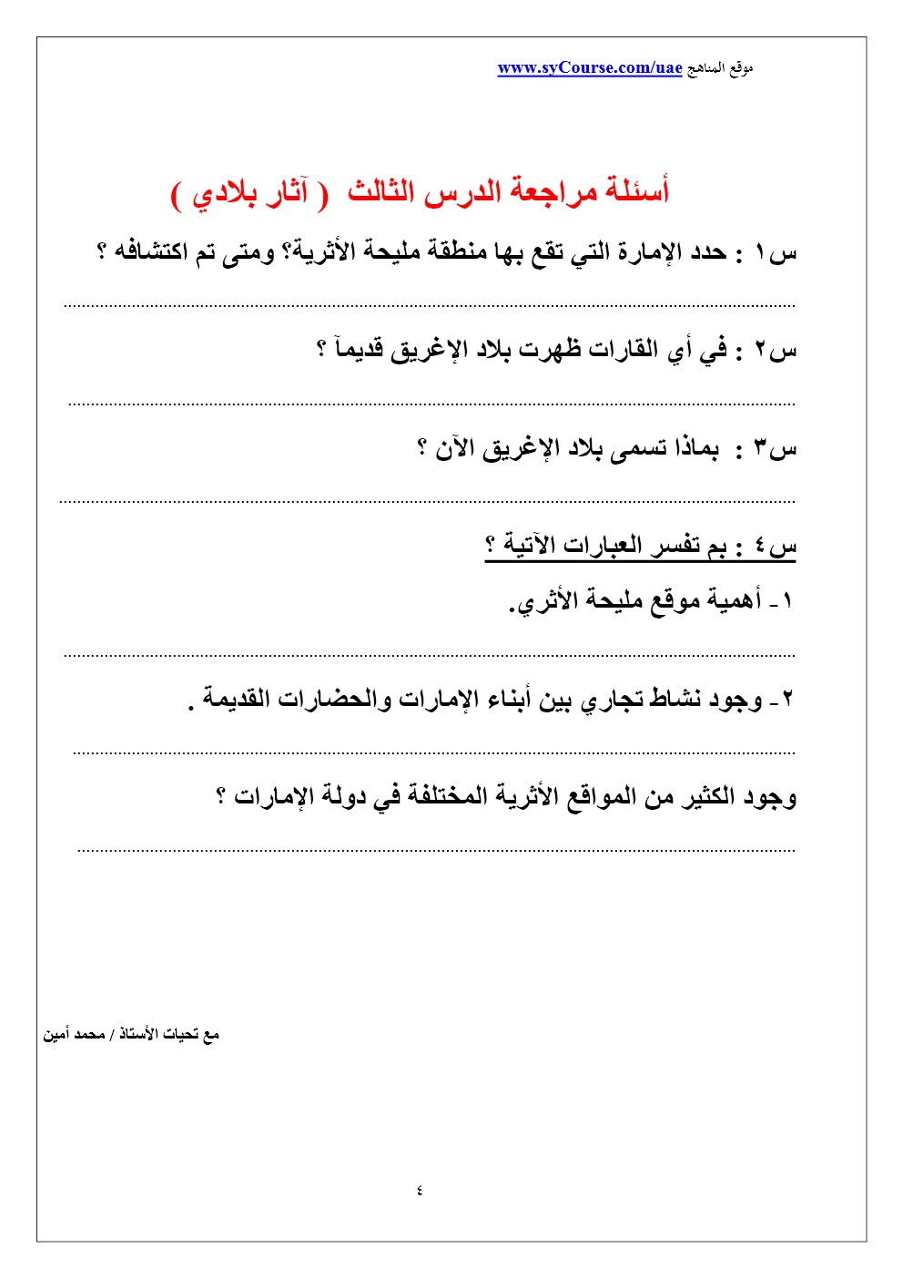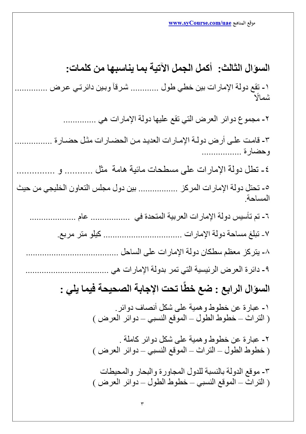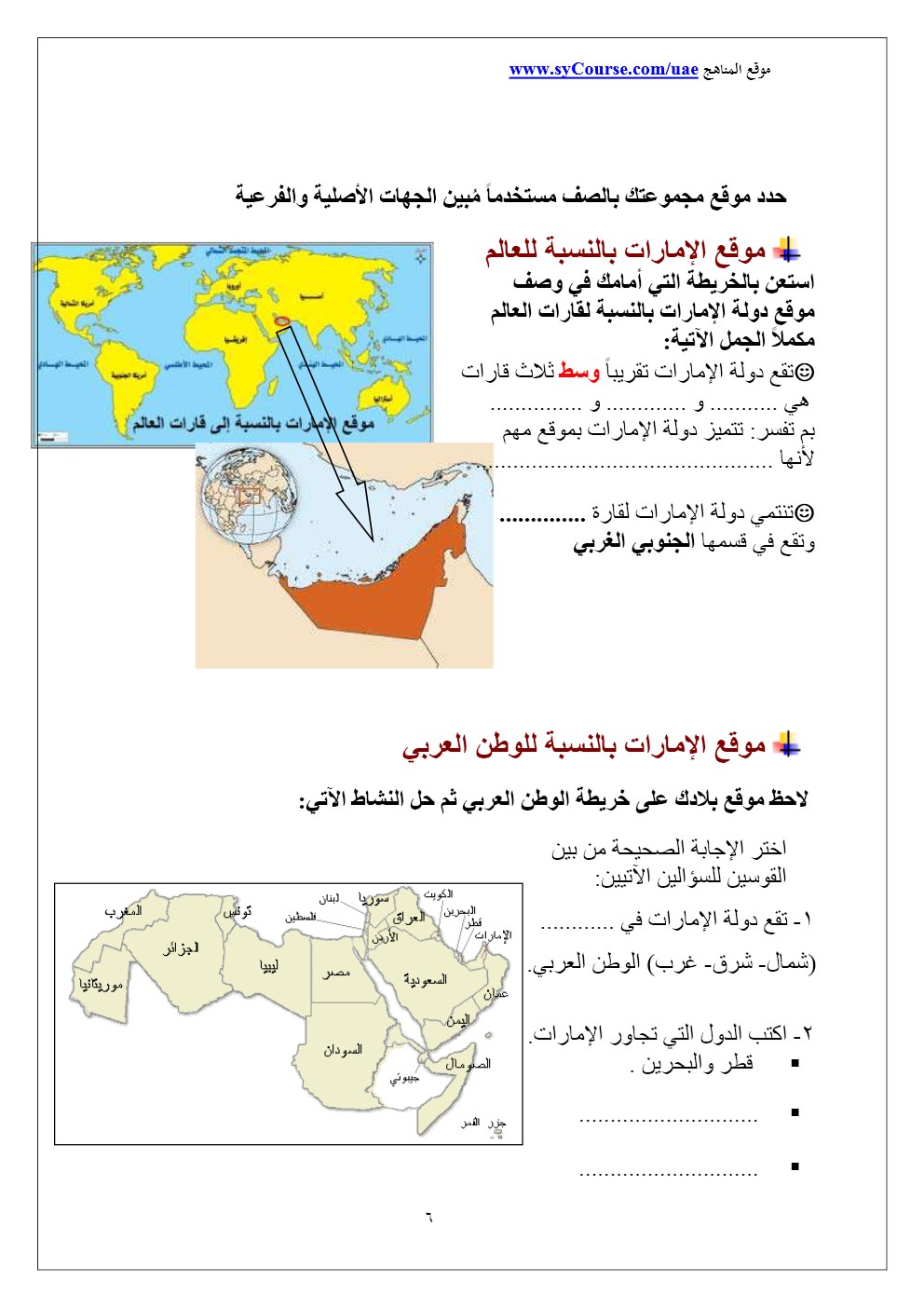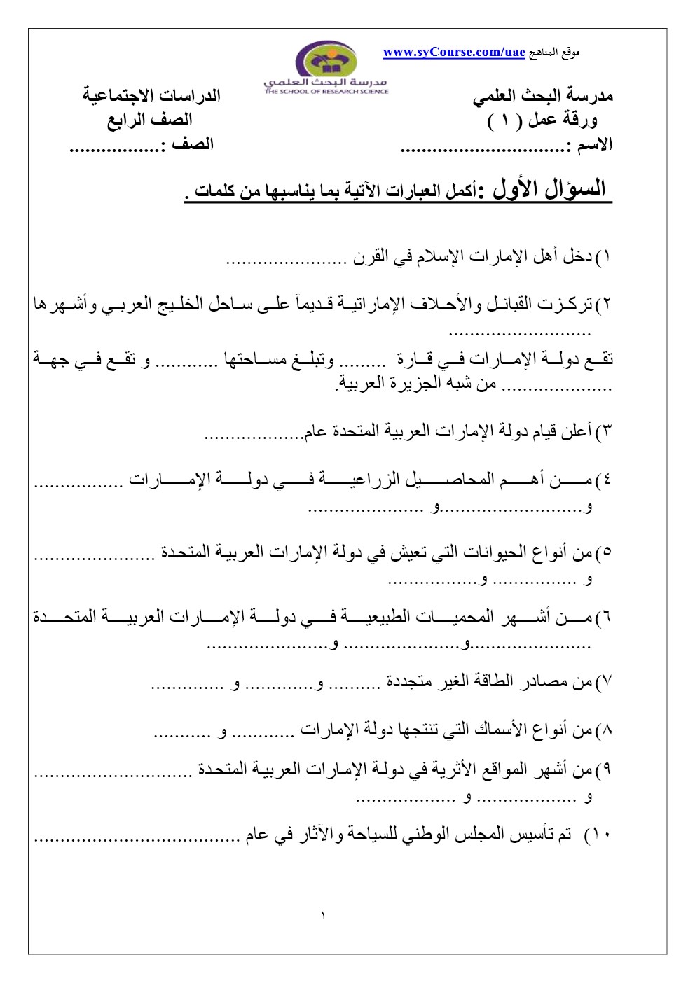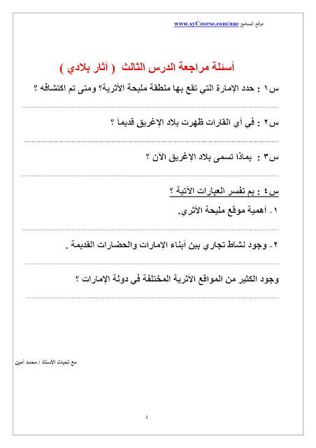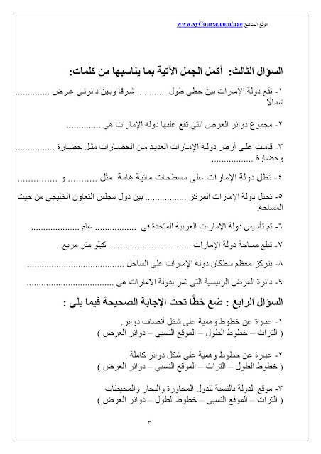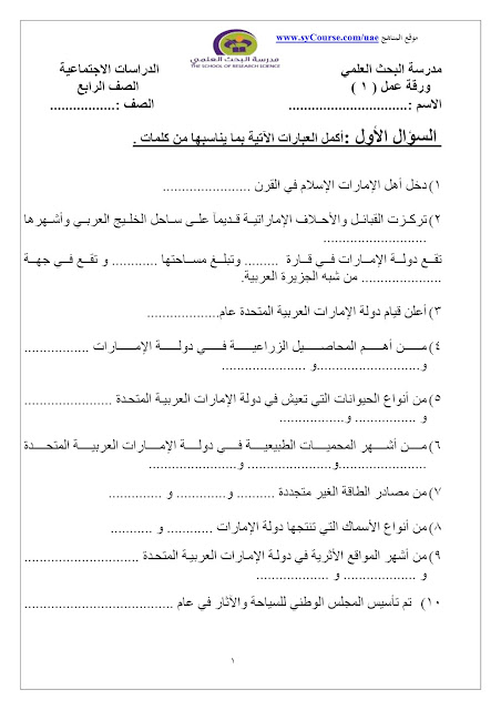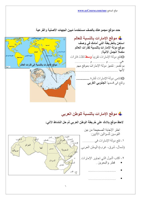 الصف الرابع - الفصل الأول- اجتماعيات- أوراق عمل 2016-2017 وفق المنهاج الاماراتي |