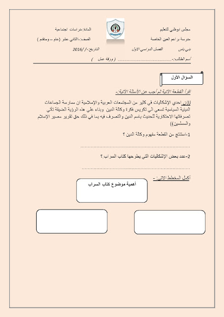 الصف الثاني عشر- الفصل الأول- اجتماعيات- أوراق عمل 2016-2017 منهاج اماراتي حديث