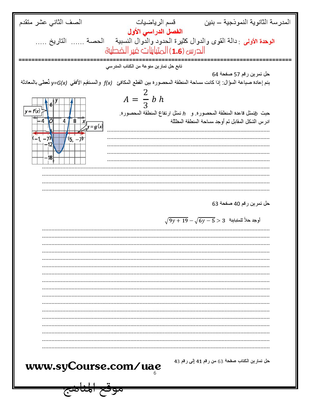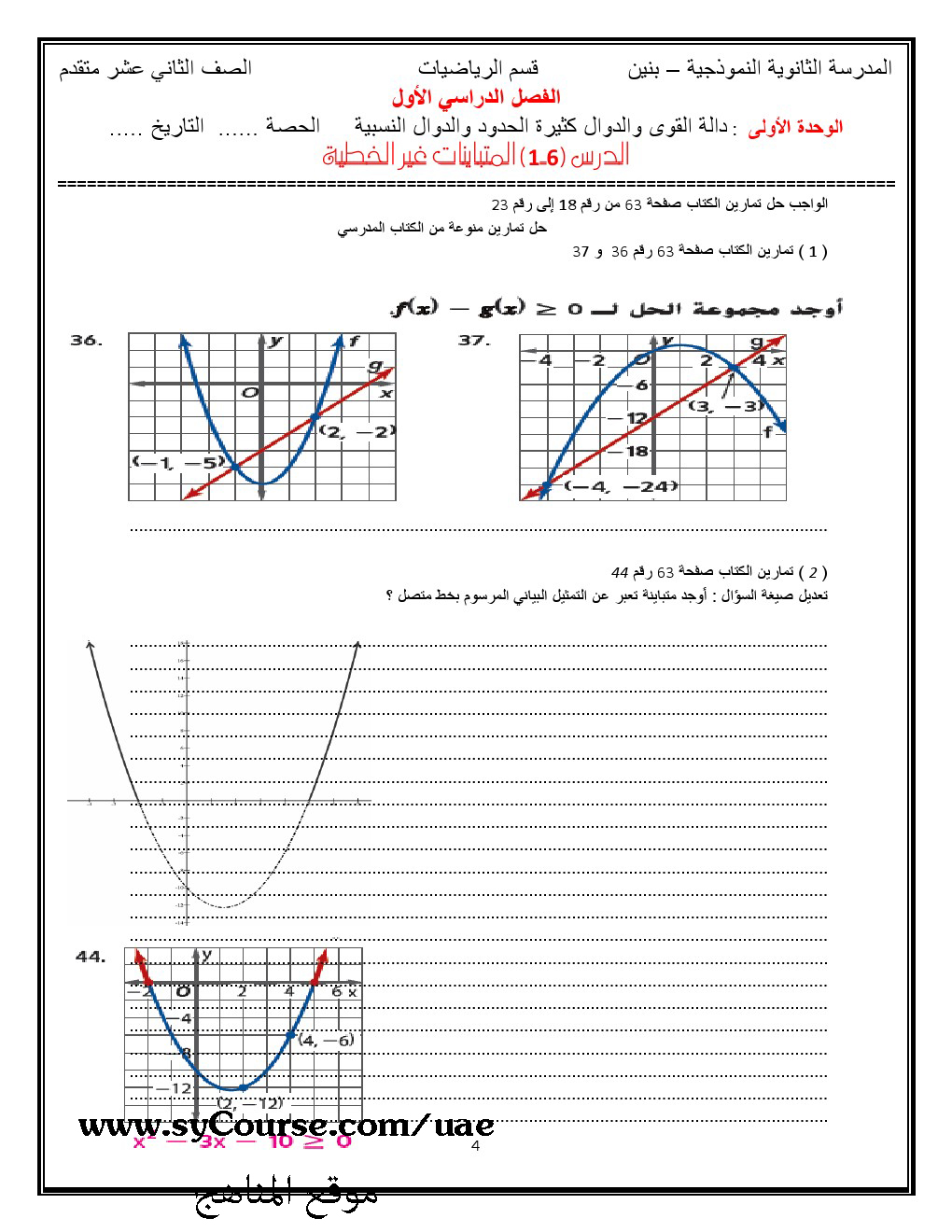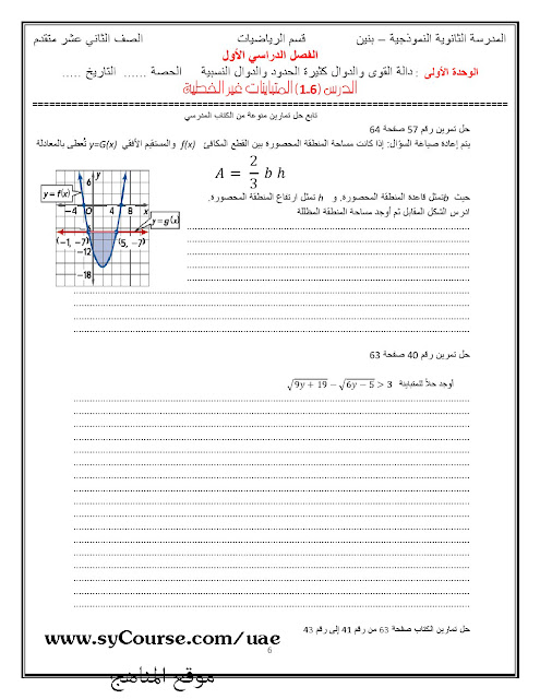 دالة القوى والدوال كثيرة الحدود والدوال النسبية -الدرس (6-1) المتباينات غير الخطية
