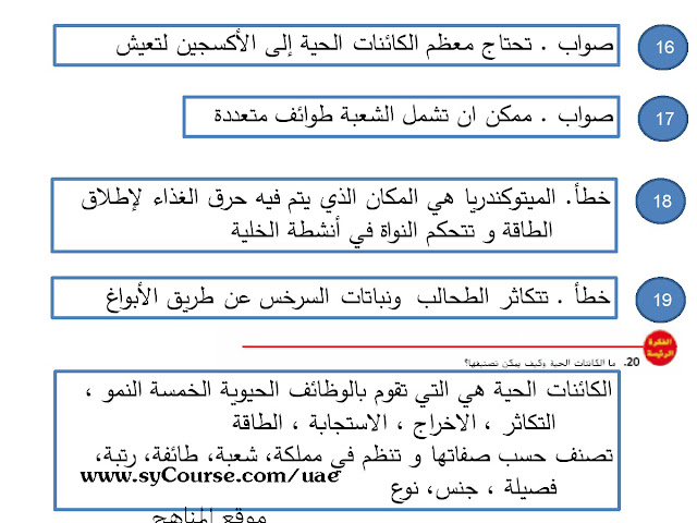 الصف الرابع- الفصل الأول- علوم- حل وشرح الوحدتين الأولى والثانية 2016-2017 وفق المنهاج الاماراتي
