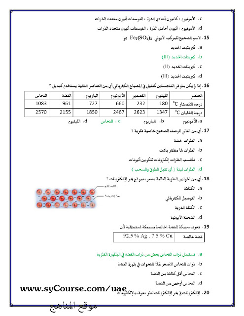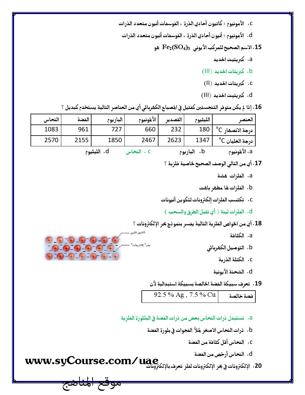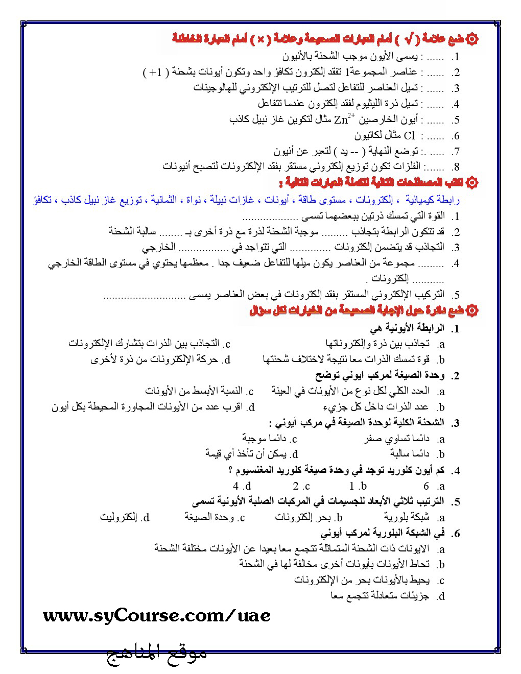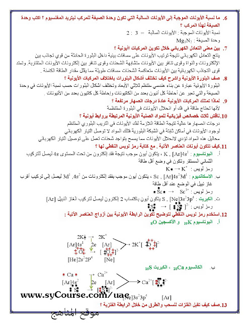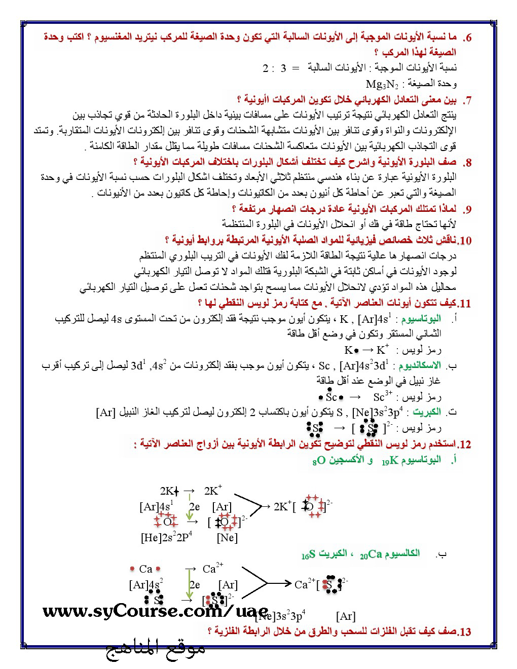 كيمياء أسئلة وإجابات عن الفلزات والمركبات الأيونية | ||