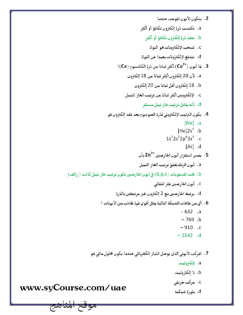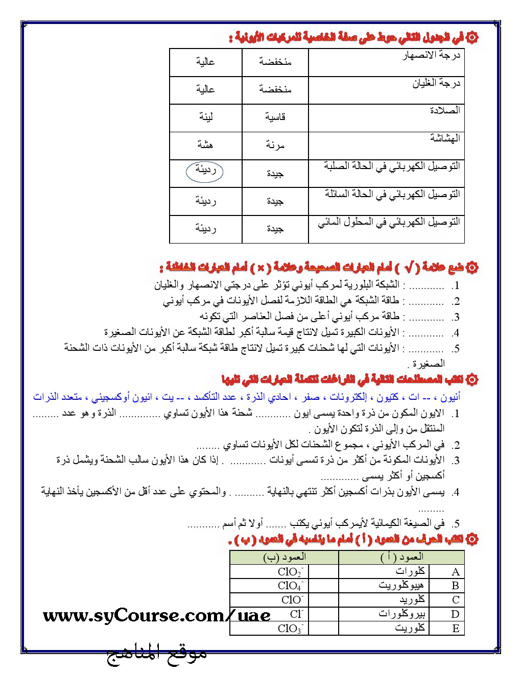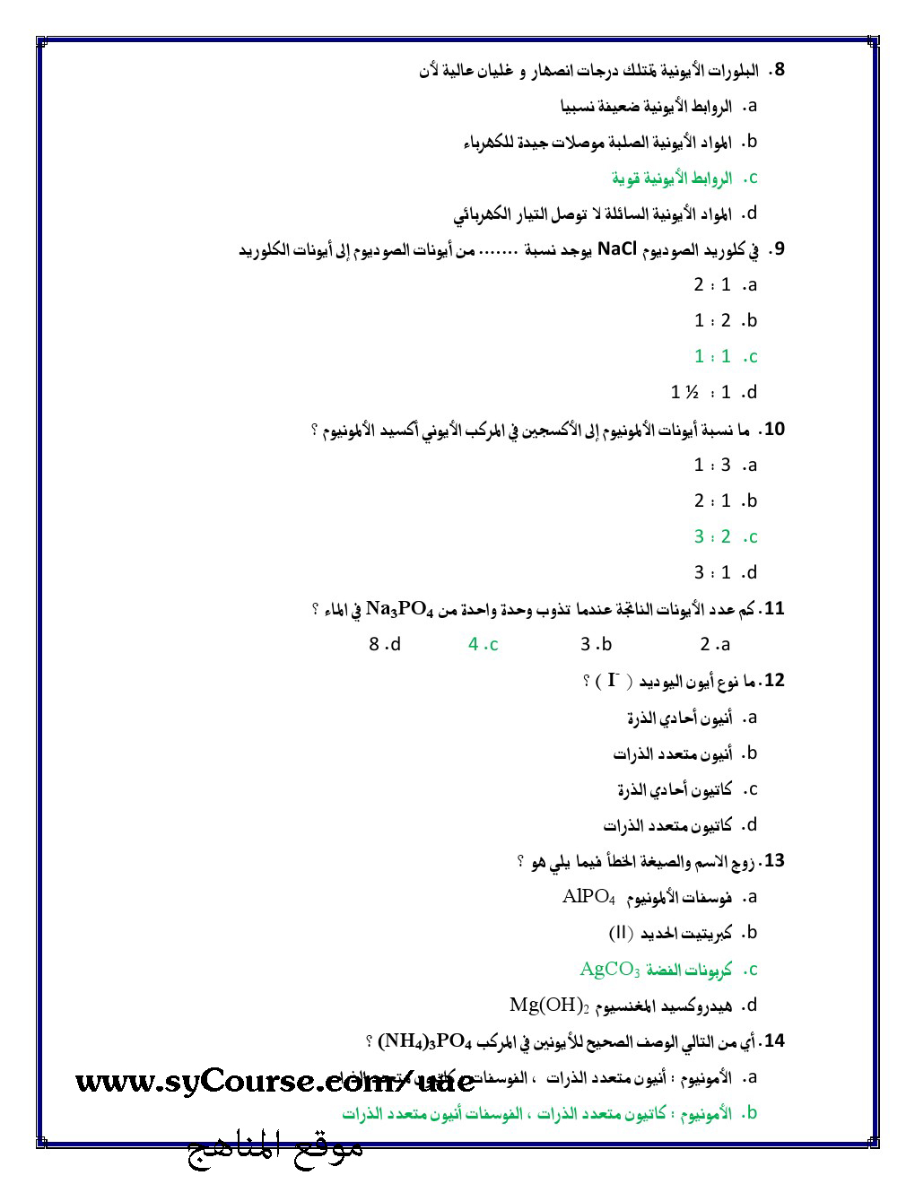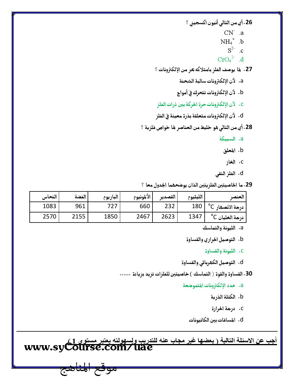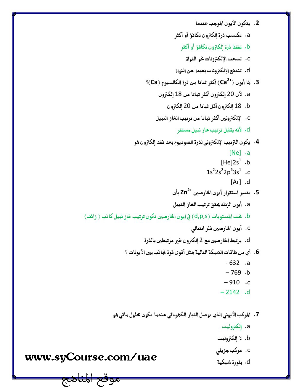 كيمياء أسئلة وإجابات عن الفلزات والمركبات الأيونية | ||