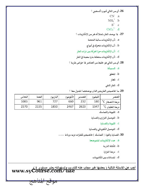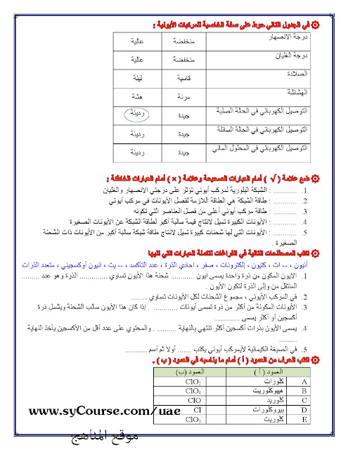 الصف الثاني عشر- كيمياء- أسئلة وإجابات عن الفلزات والمركبات الأيونية 2016-2017 |