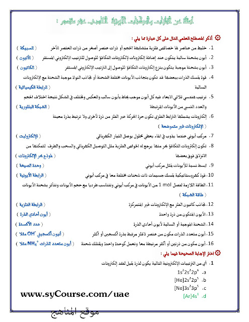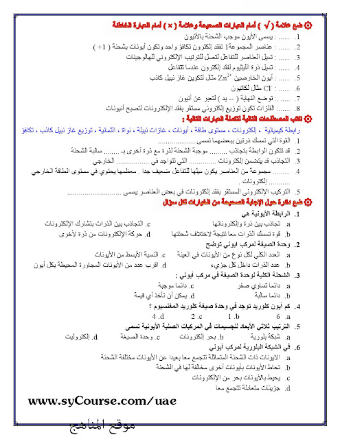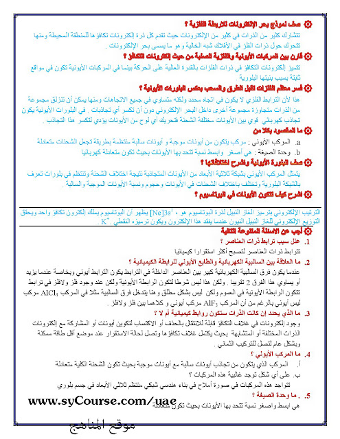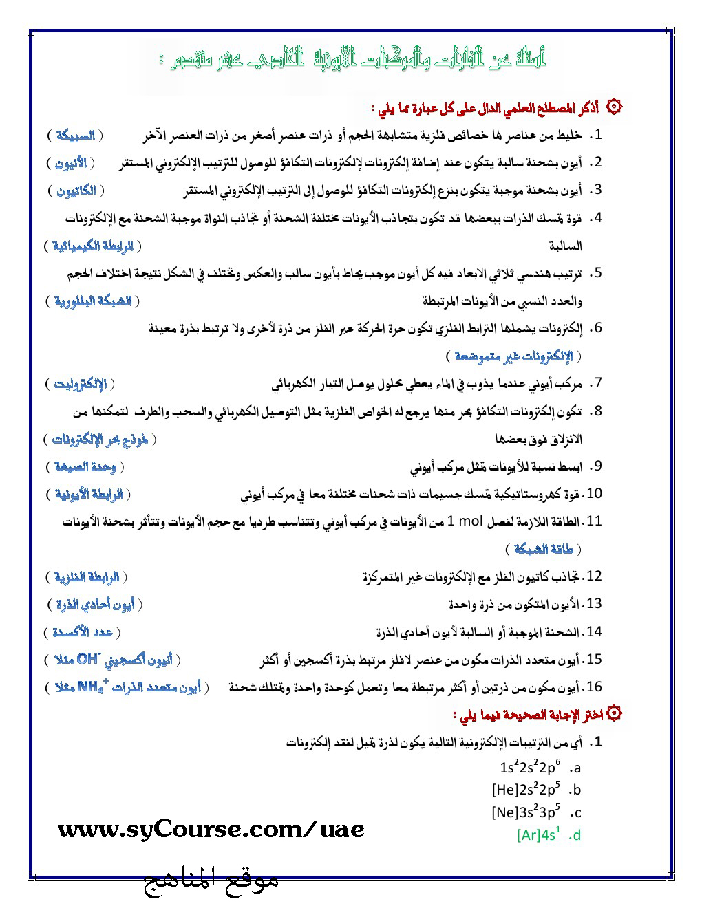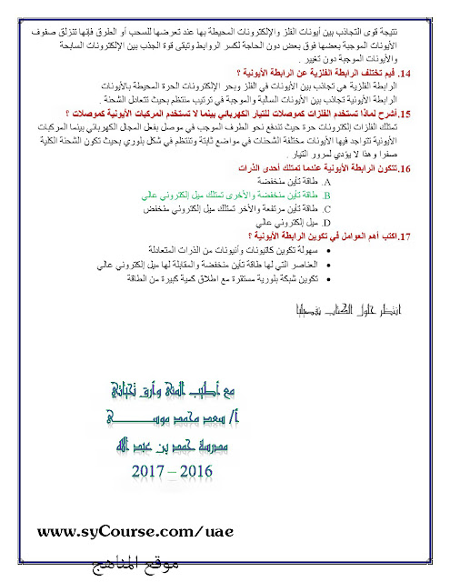 معلومات الملف: الصف الثاني عشر- كيمياء- أسئلة وإجابات عن الفلزات والمركبات الأيونية 2016-2017 | ||