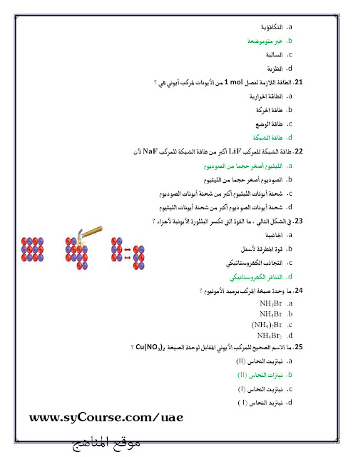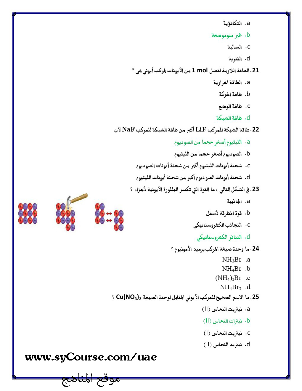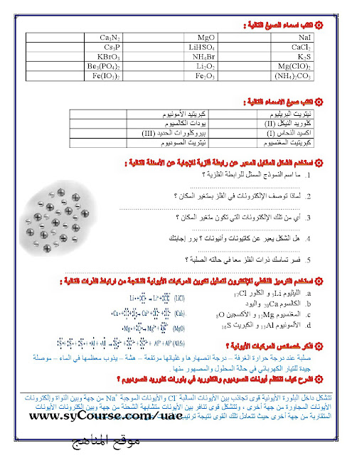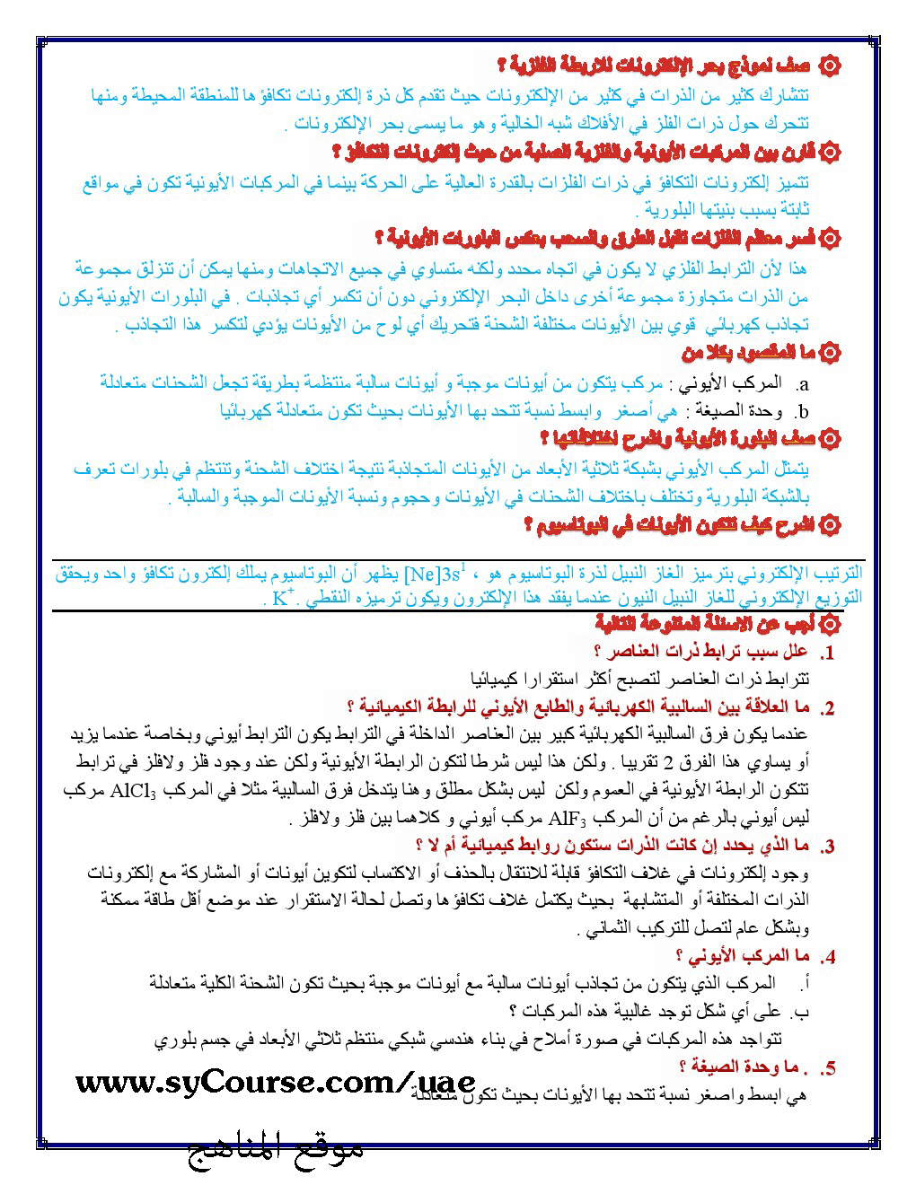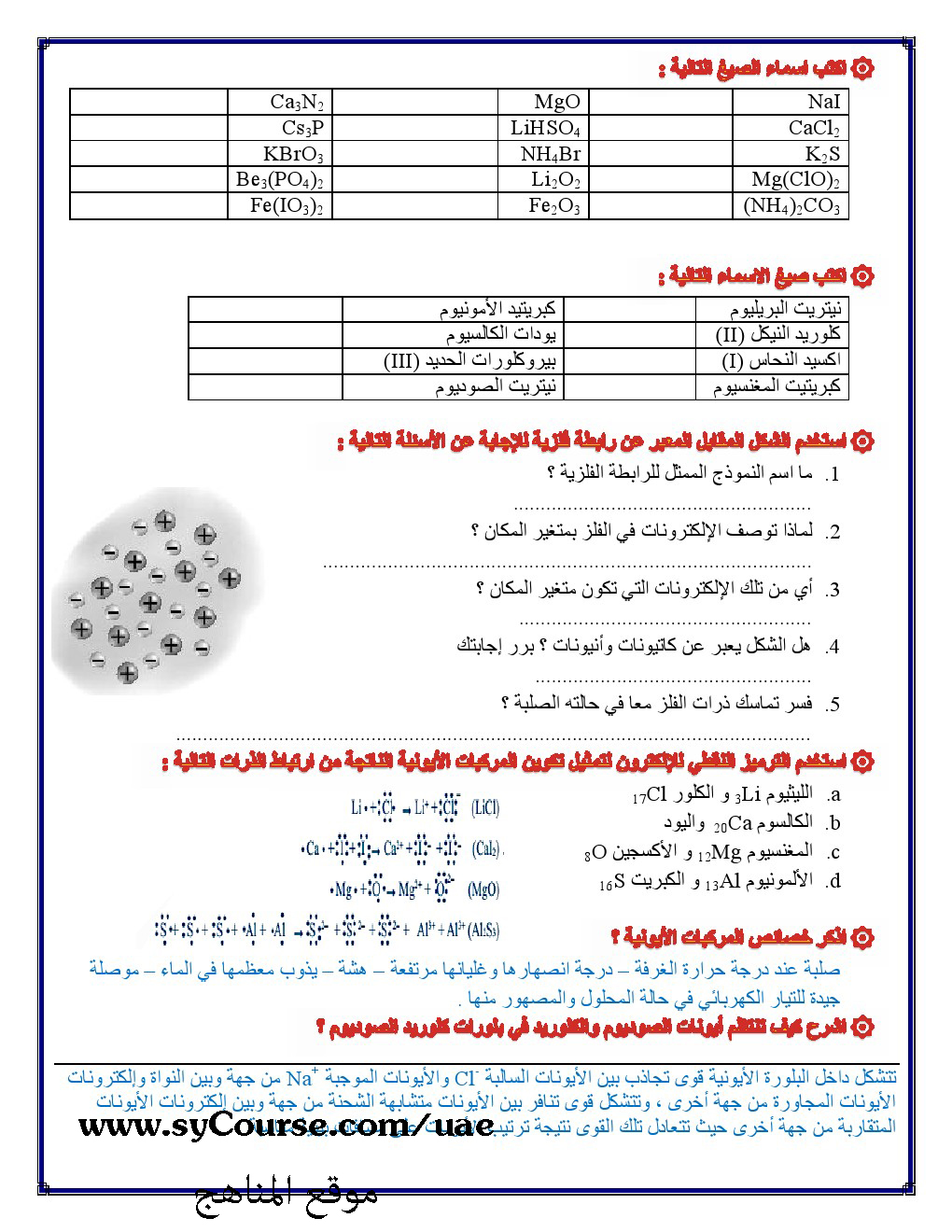 | كيمياء أسئلة وإجابات عن الفلزات والمركبات الأيونية | ||