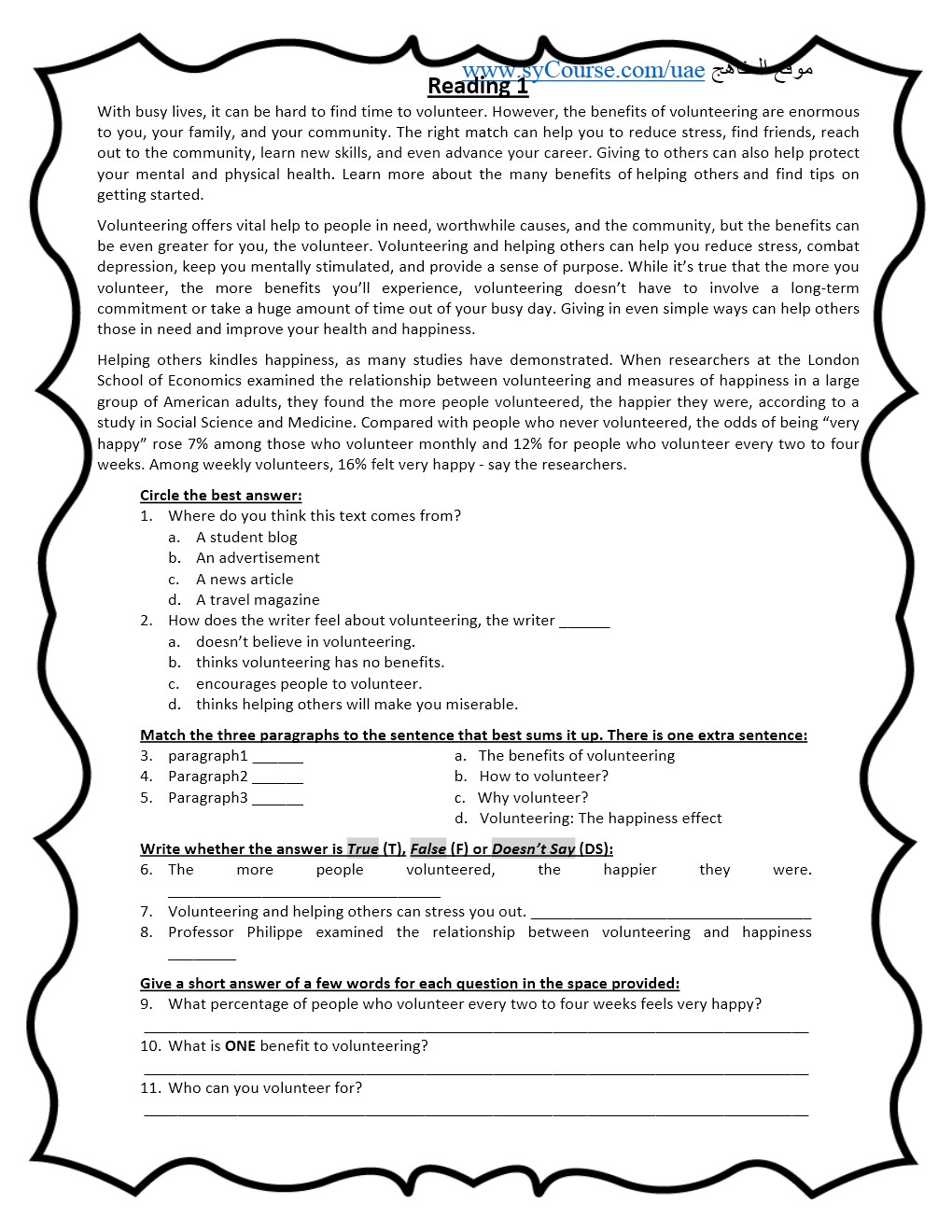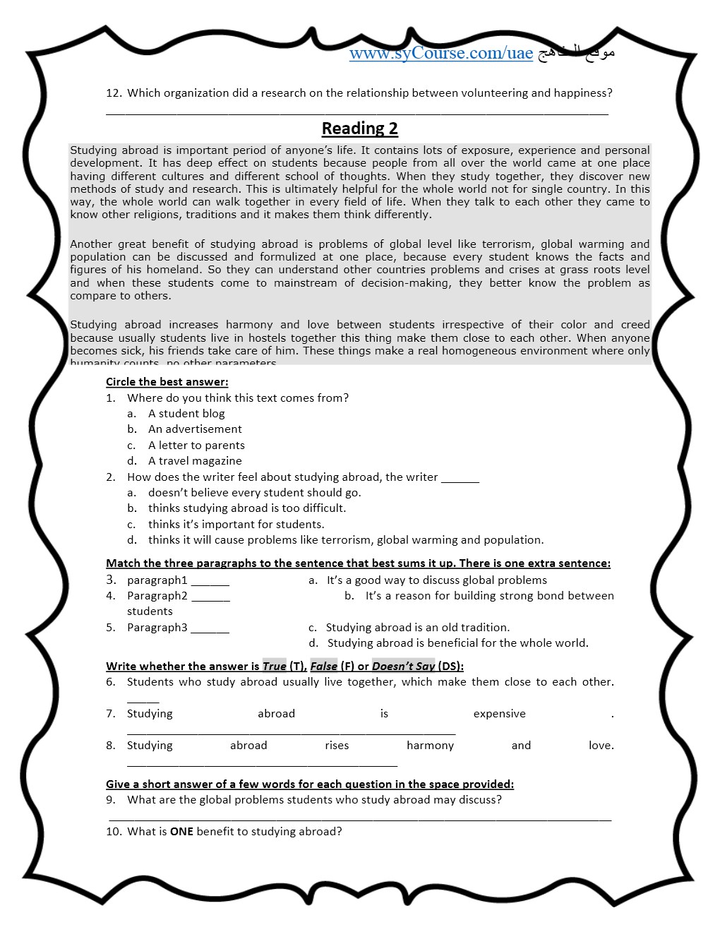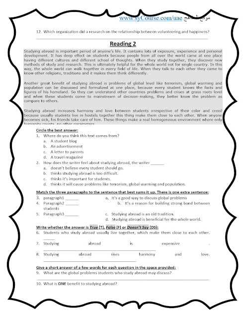 معلومات الملف: الصف الثامن, الفصل الأول, لغة انكليزية, - Mid-Term Exercises 2016-2017 | ||