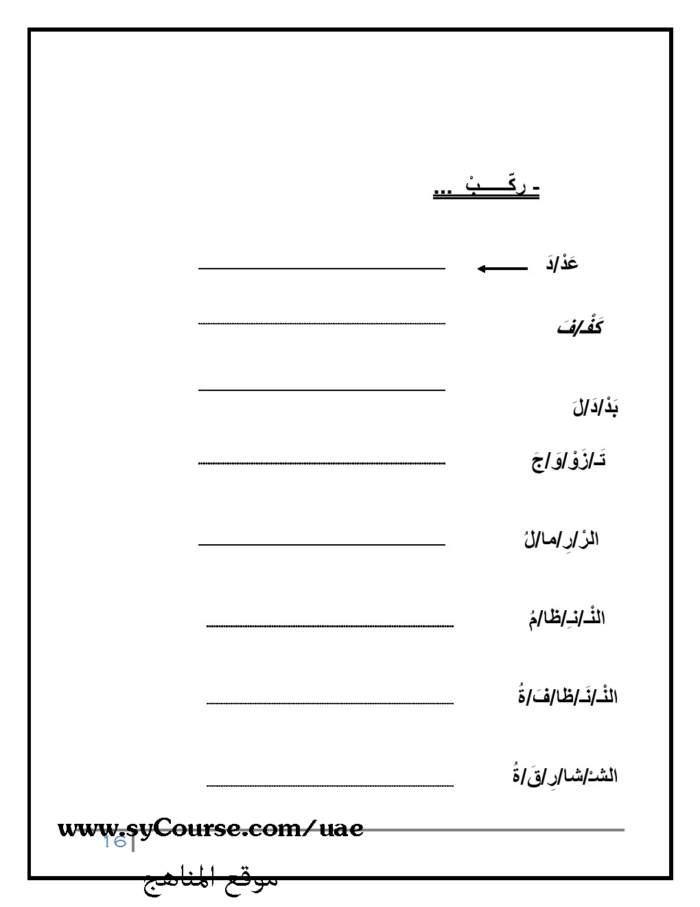 | أنت هنا: موقع المناهج ⇦ المناهج الإماراتية ⇦ الصف الثاني ⇦ لغة عربية ⇦ الفصل الأول ⇦ أوراق عمل |