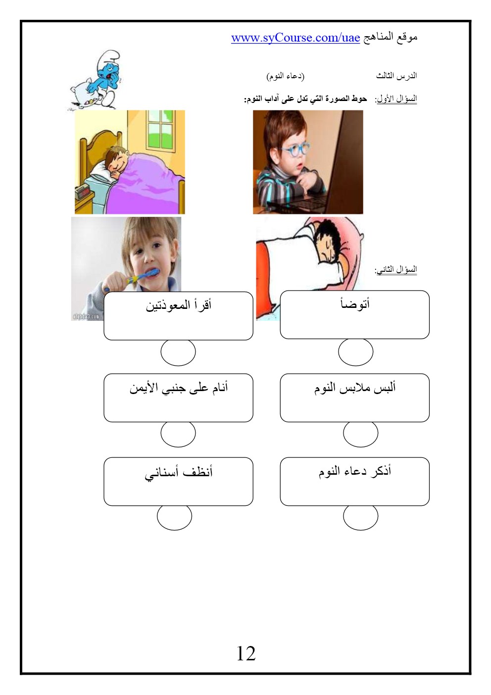 9. ملخص وأوراق عمل درس دعاء النوم