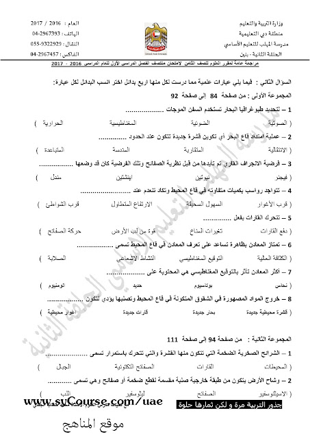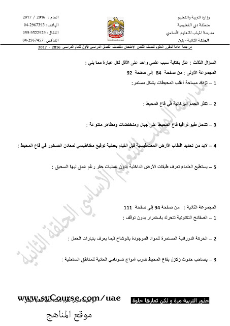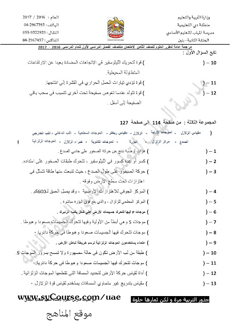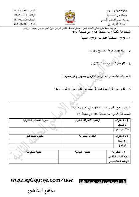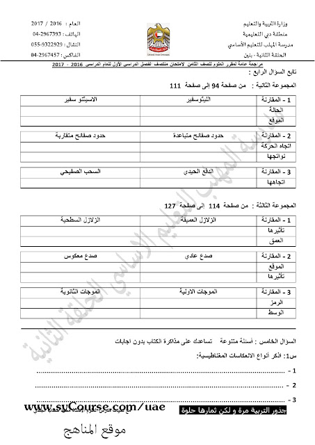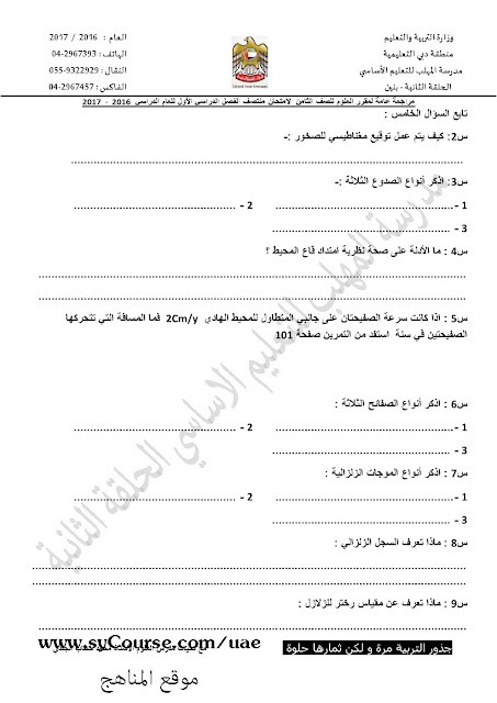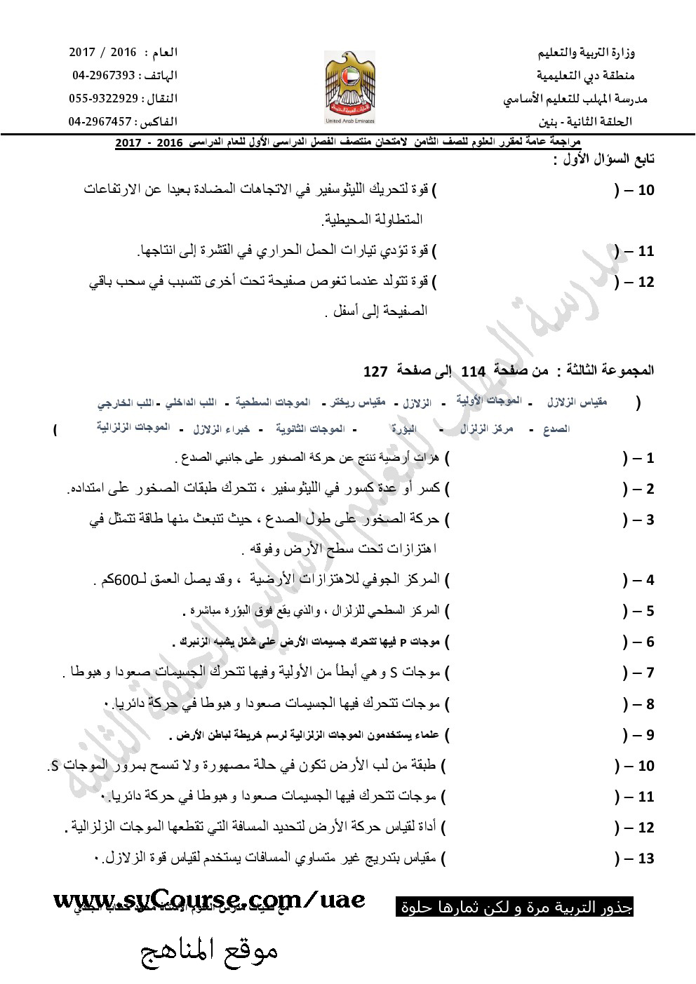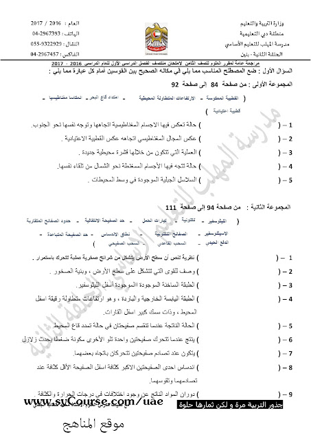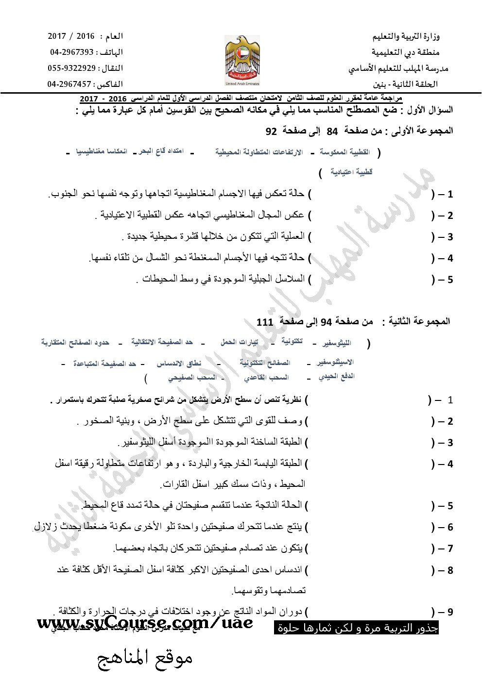 معلومات الملف: الصف الثامن, الفصل الأول, علوم, مراجعة قبل الامتحان 2016-2017 | ||