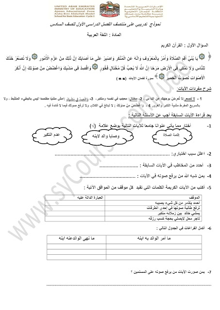 أنت هنا: موقع المناهج ⇦ المناهج الإماراتية ⇦ الصف السادس ⇦ لغة عربية ⇦ الفصل الأول ⇦ الامتحان النهائي |