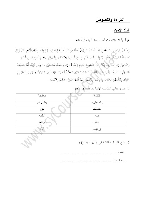 | 1. كل ما يخص امتحان الاعادة (تمكين) للصف السابع