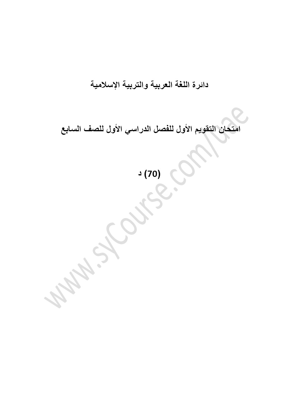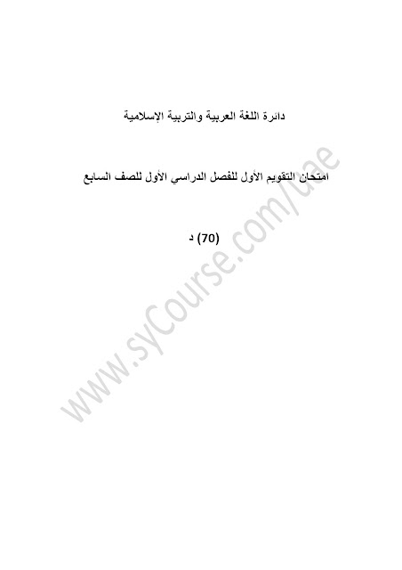 الصف السابع, الفصل الأول, لغة عربية, امتحان 2016-2017 | ||