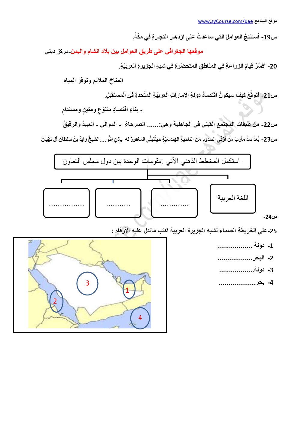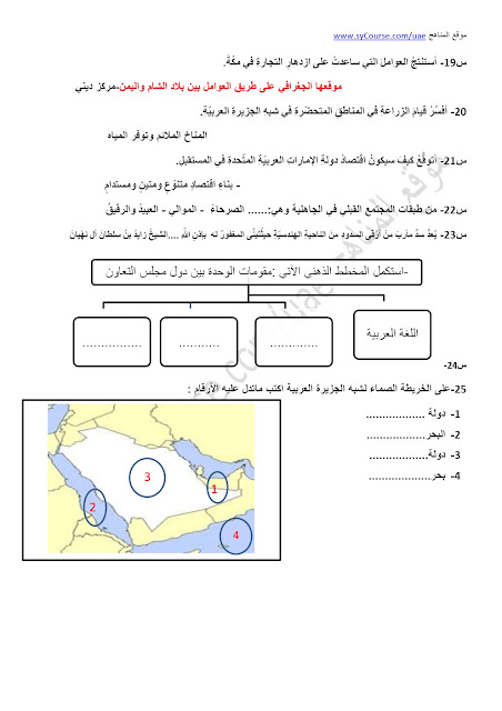الصف السابع, اجتماعيات, مراجعة التقويم الأول 2016-2017 | ||