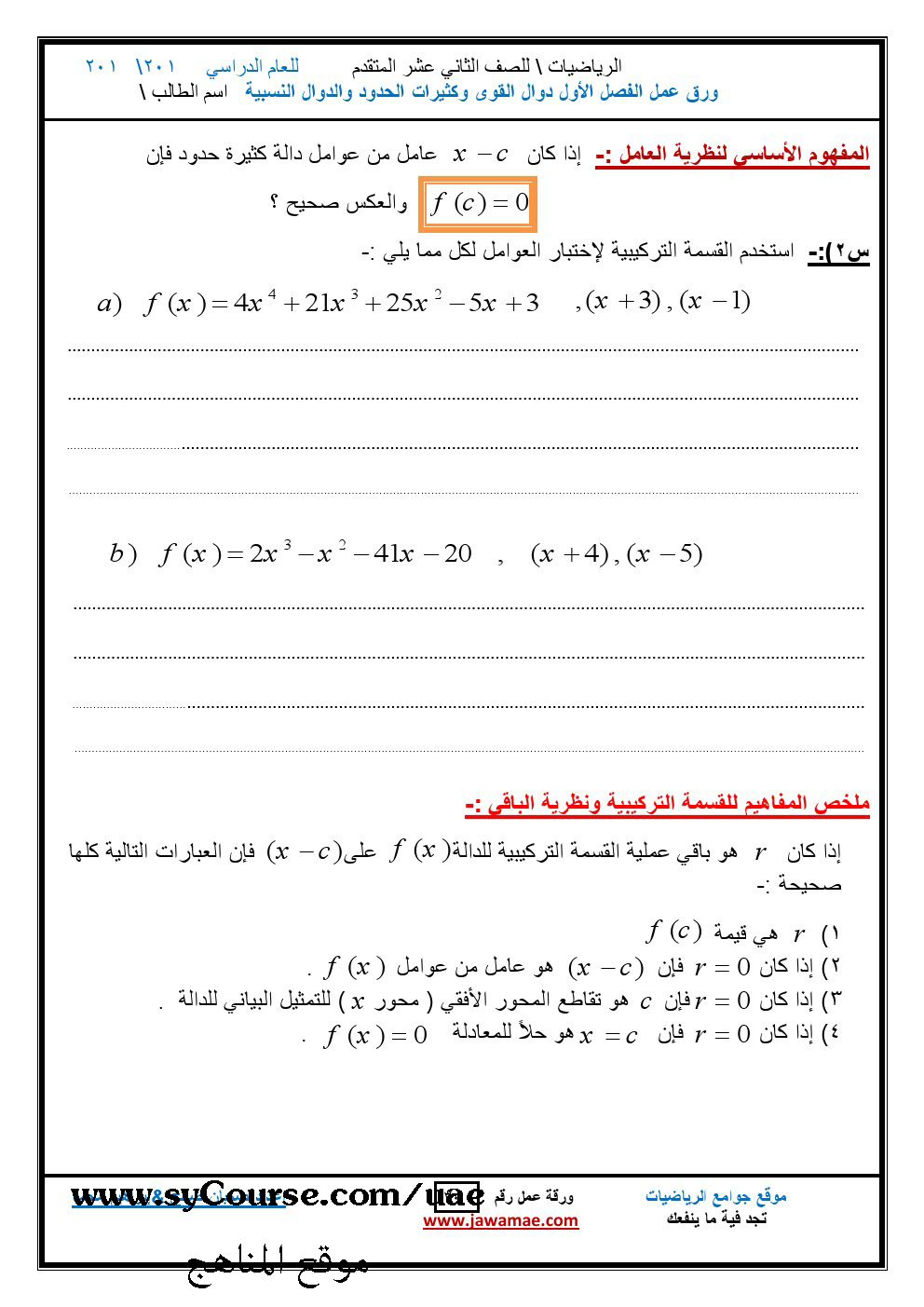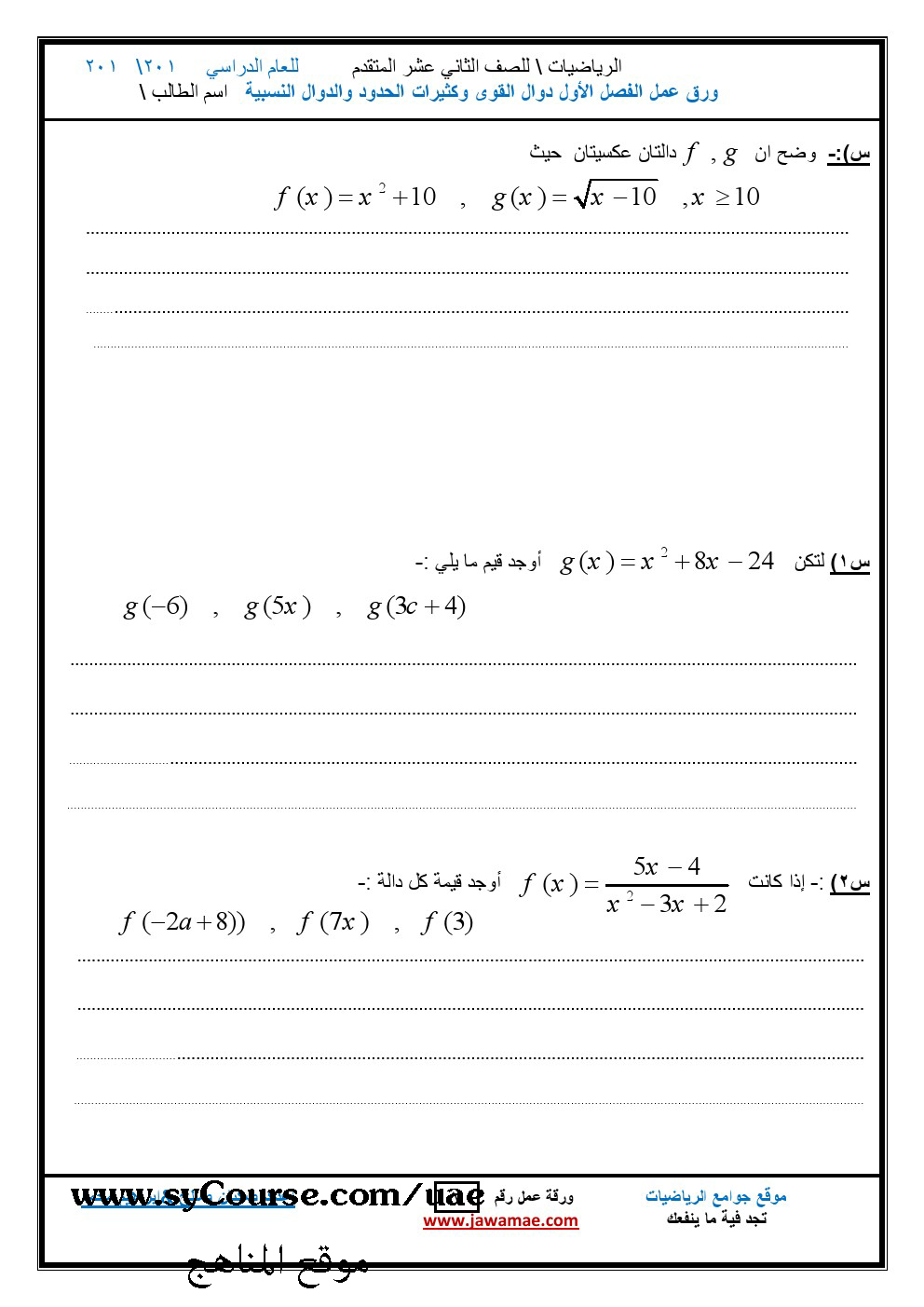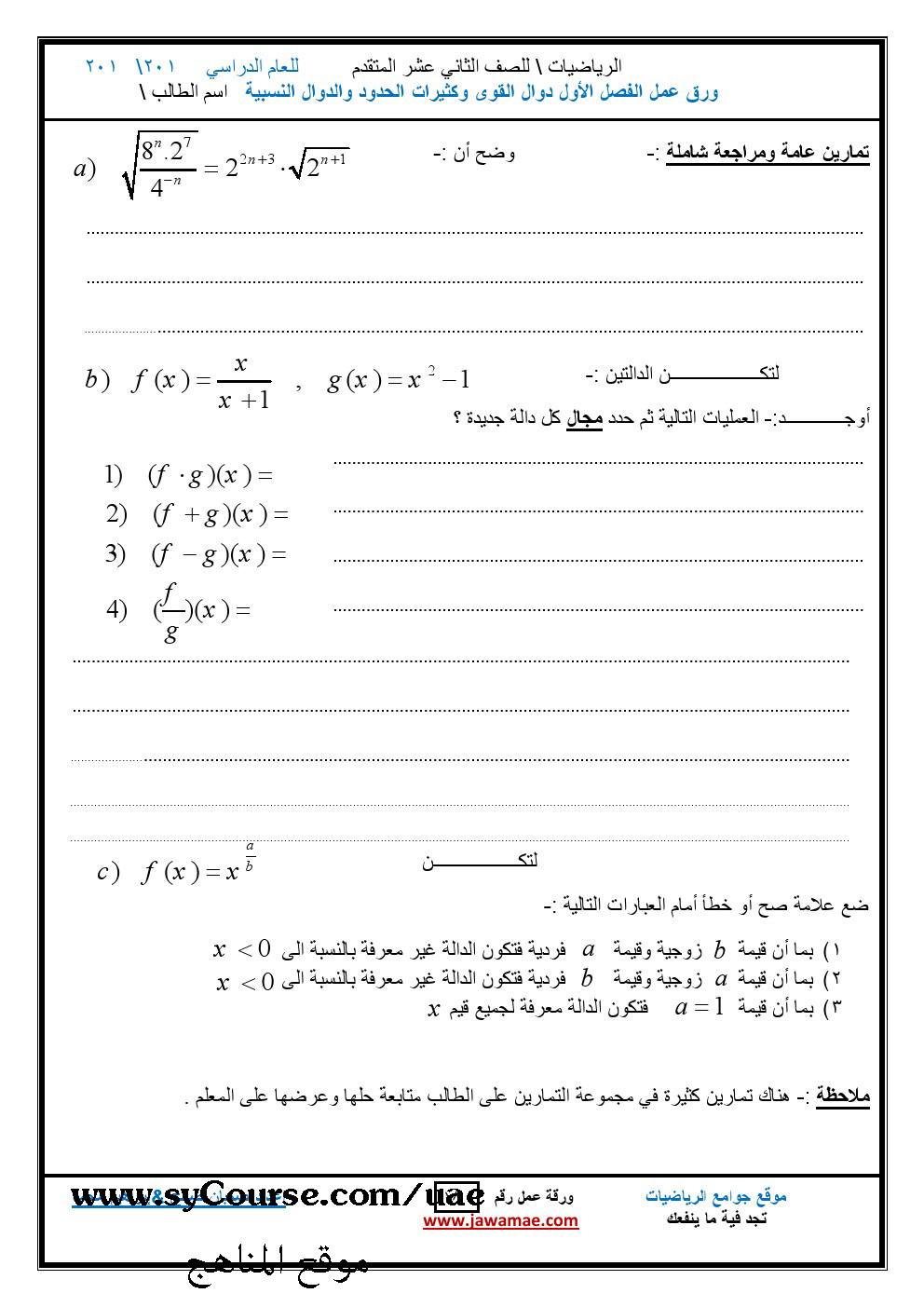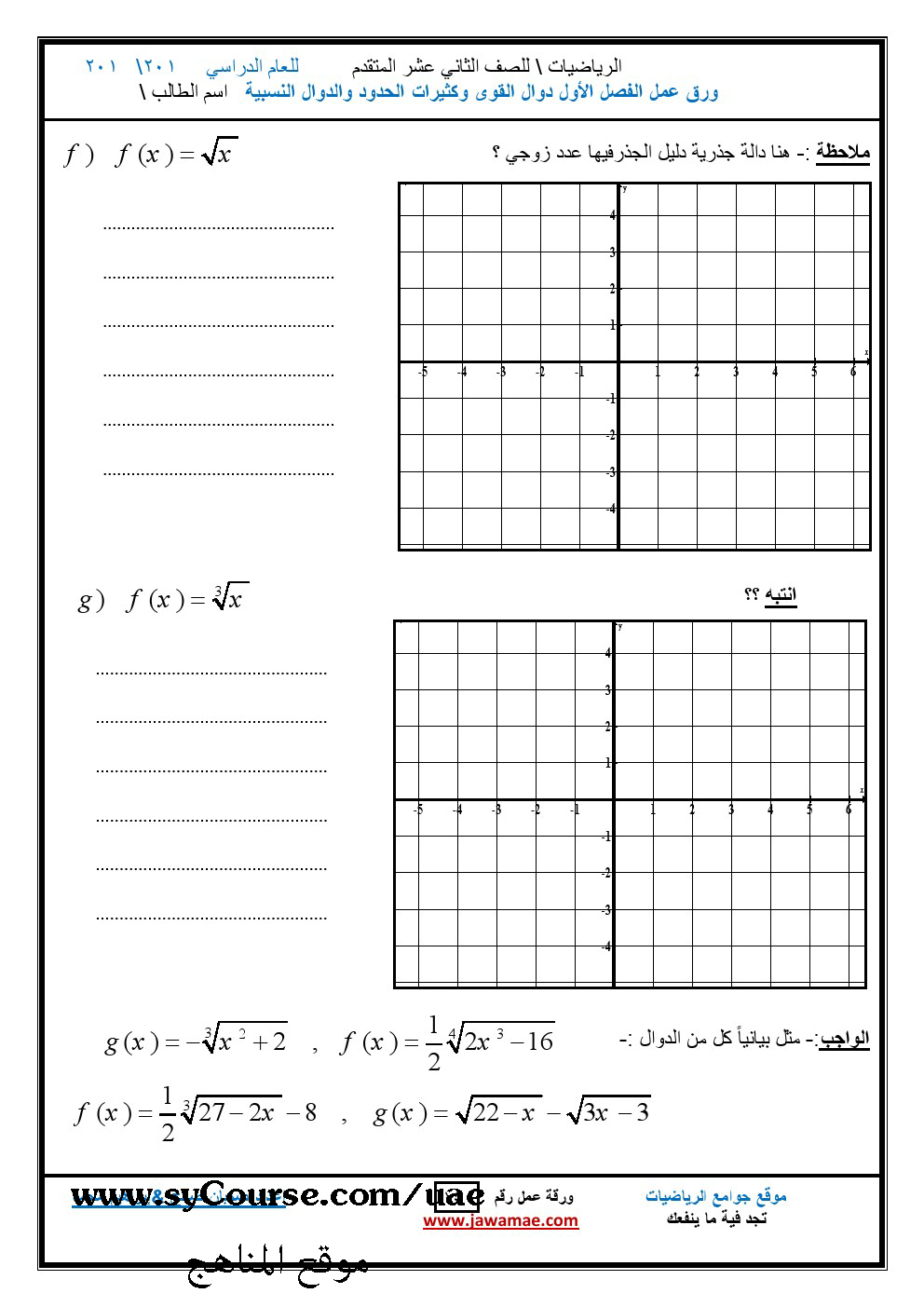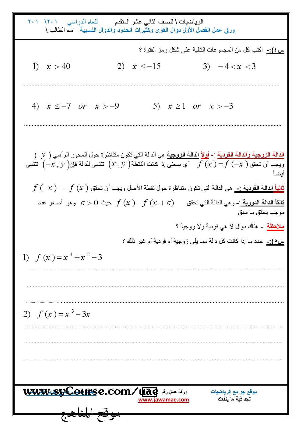 الصف الثاني عشر المتقدم, الفصل الأول, رياضيات, جميع أوراق عمل 2016-2017 لتحميل الملف على شكل كتاب الكتروني اتبع الرابط الاتي: http://upload.sycourse.com/download.php?f=math.pdf