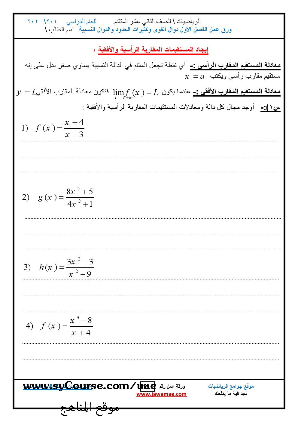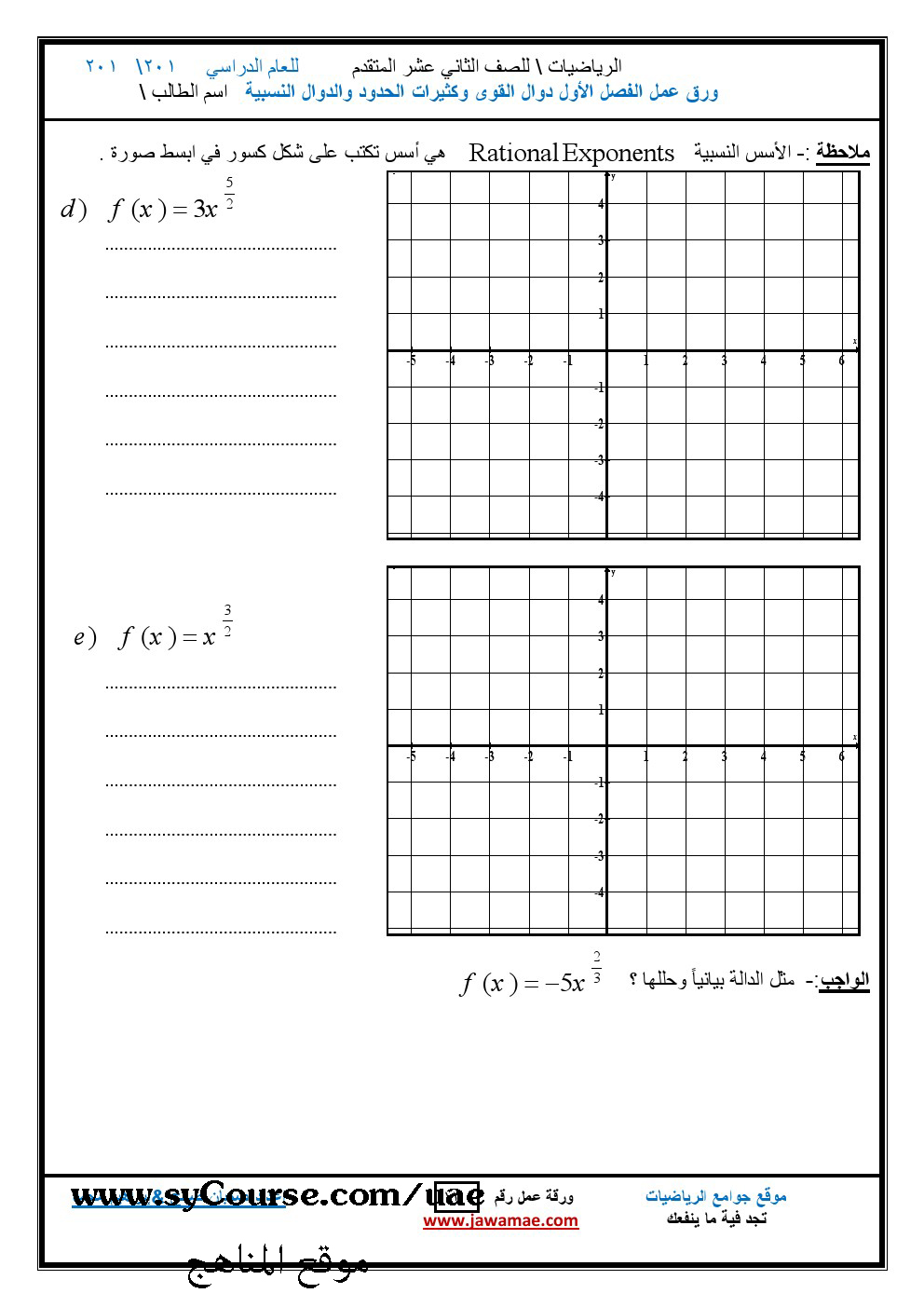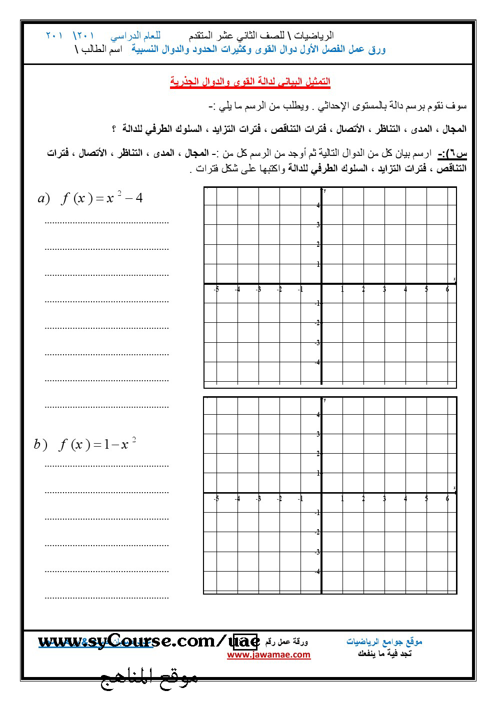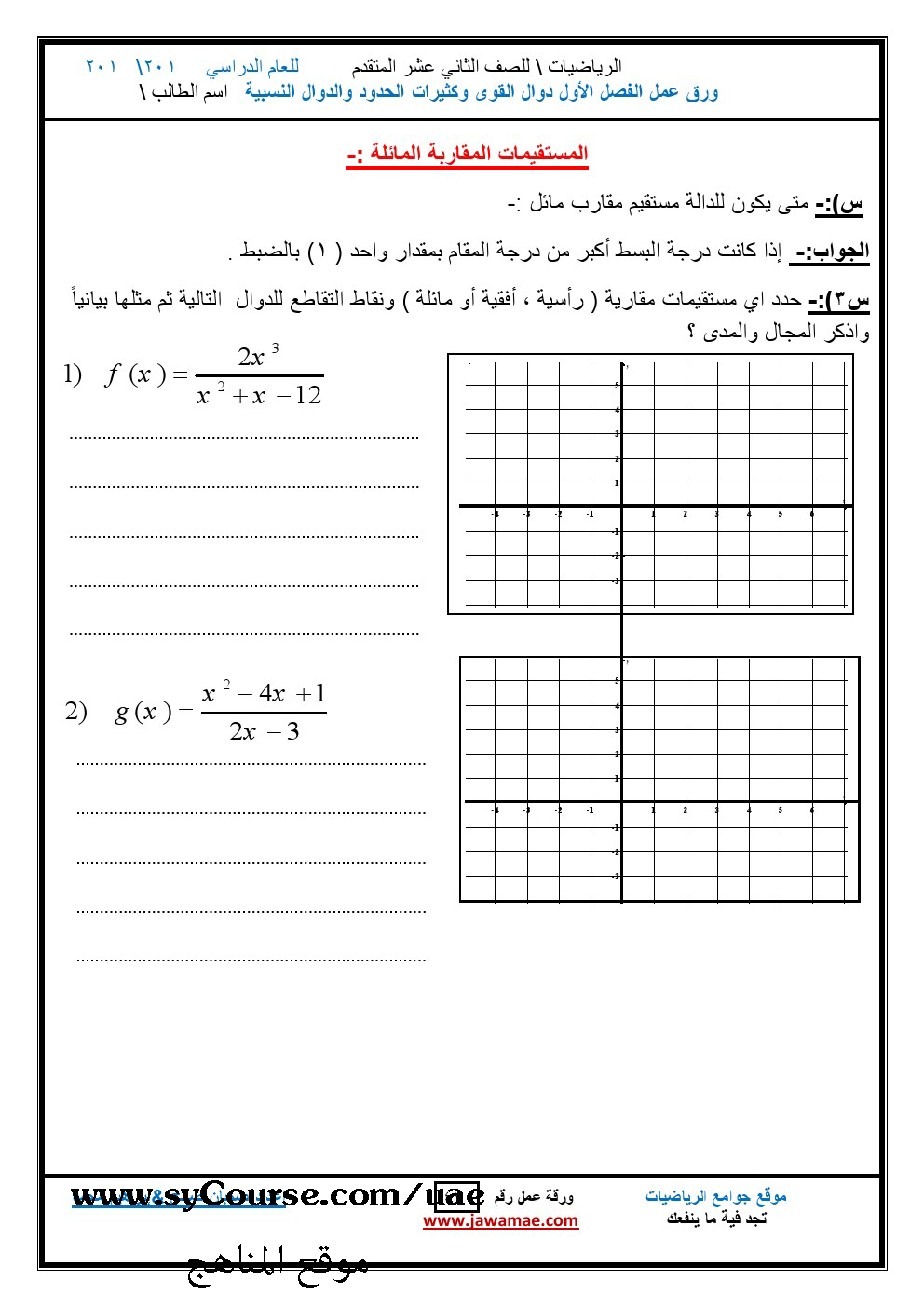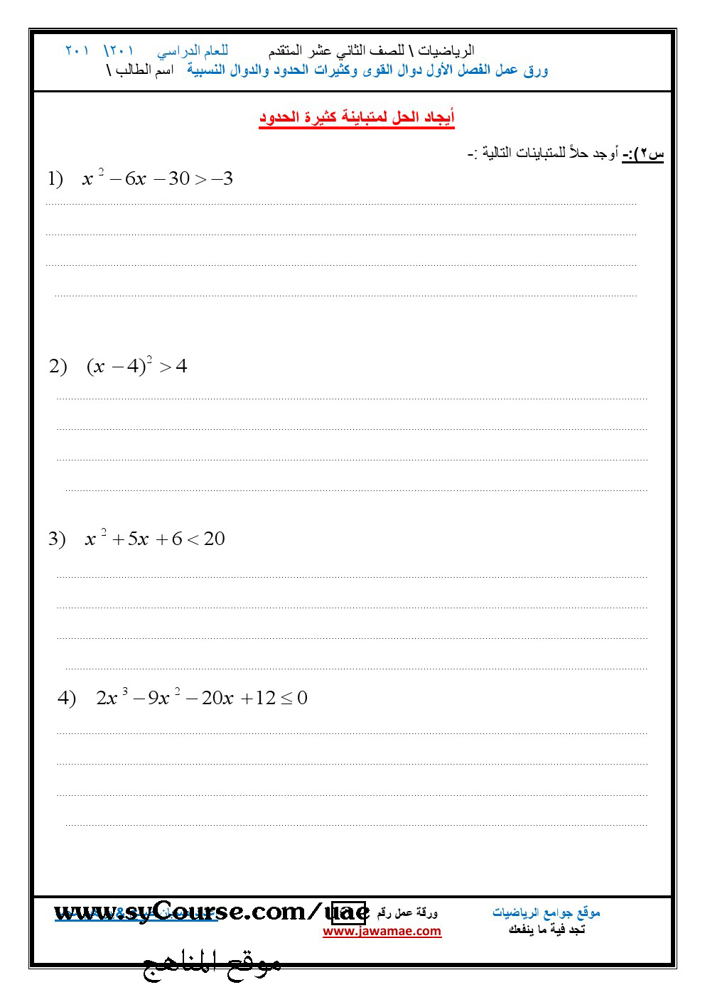 الصف الثاني عشر المتقدم, الفصل الأول, رياضيات, جميع أوراق عمل 2016-2017 لتحميل الملف على شكل كتاب الكتروني اتبع الرابط الاتي: http://upload.sycourse.com/download.php?f=math.pdf