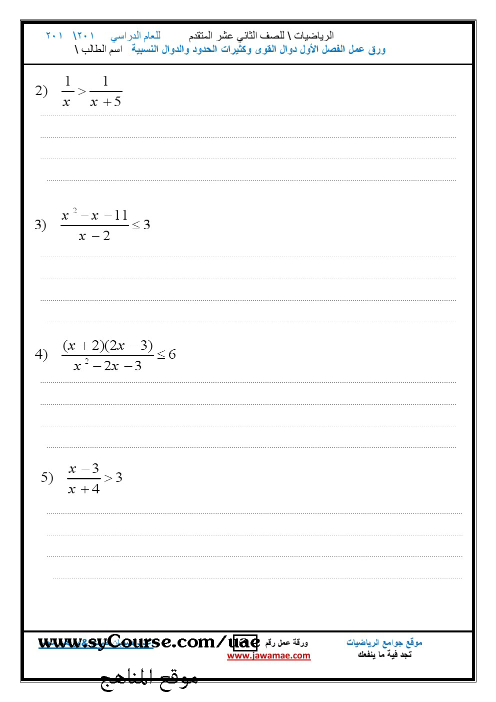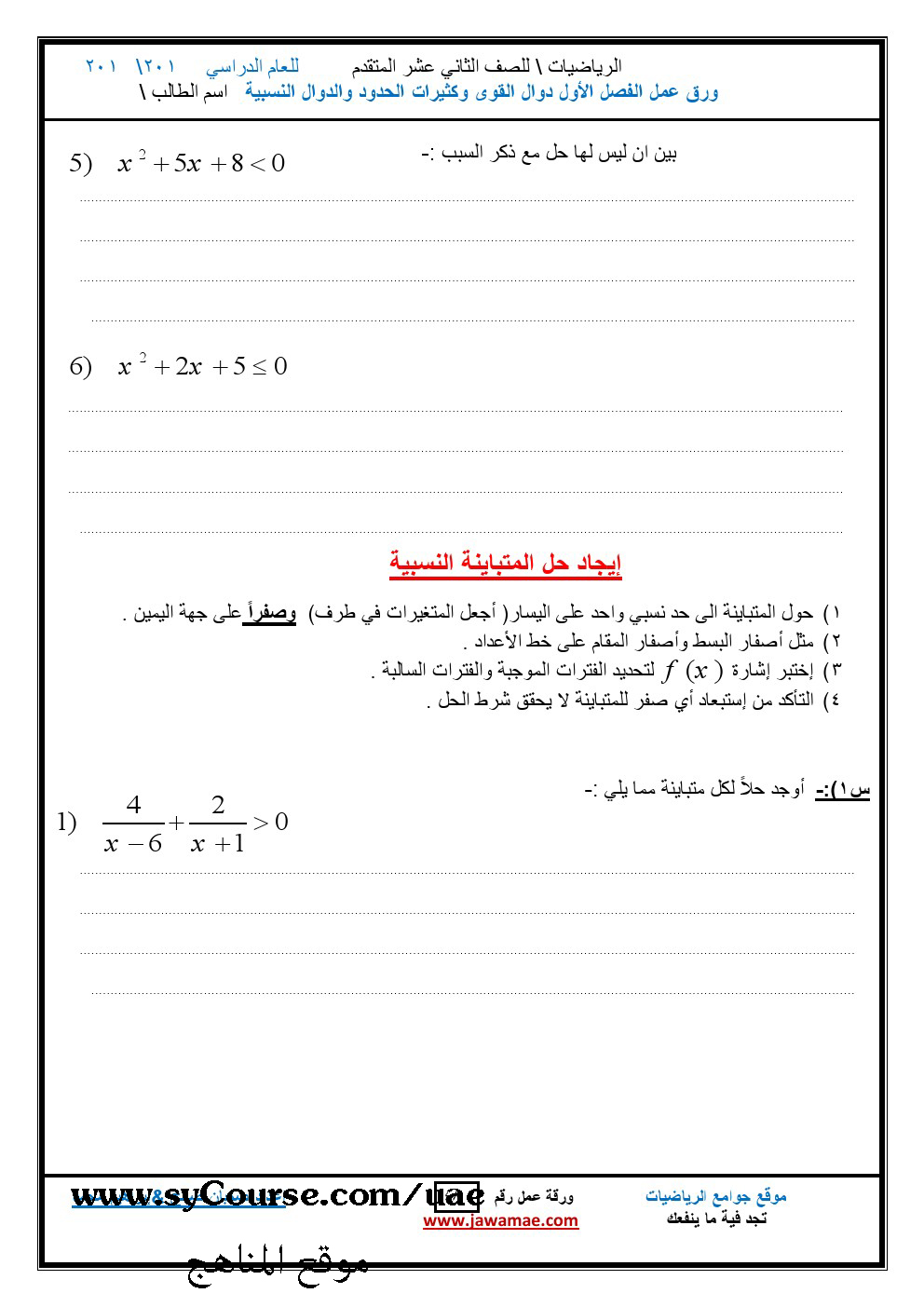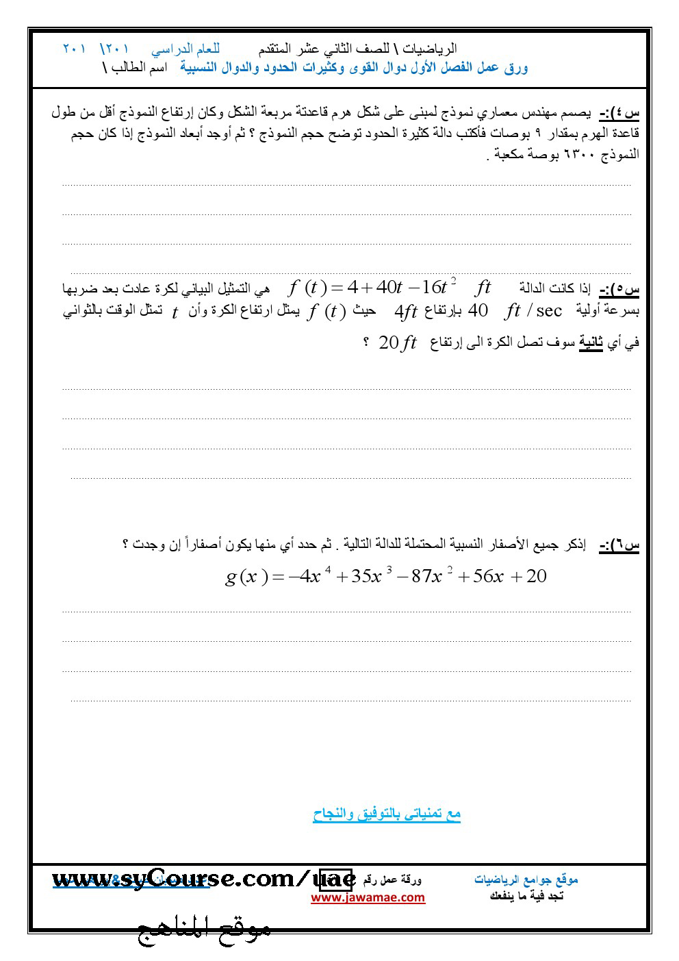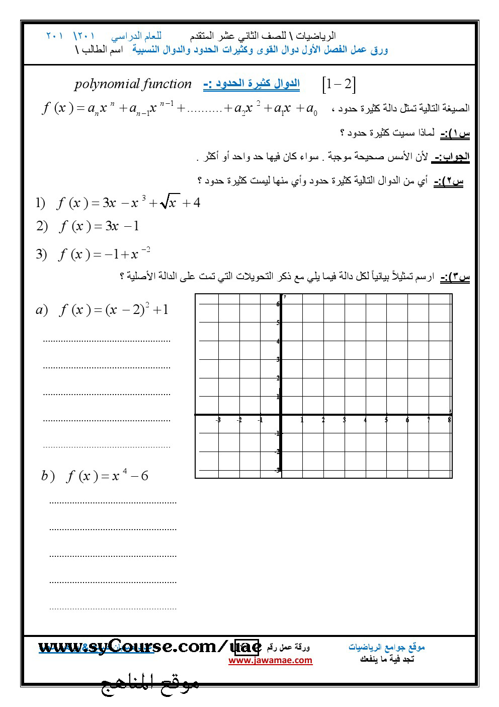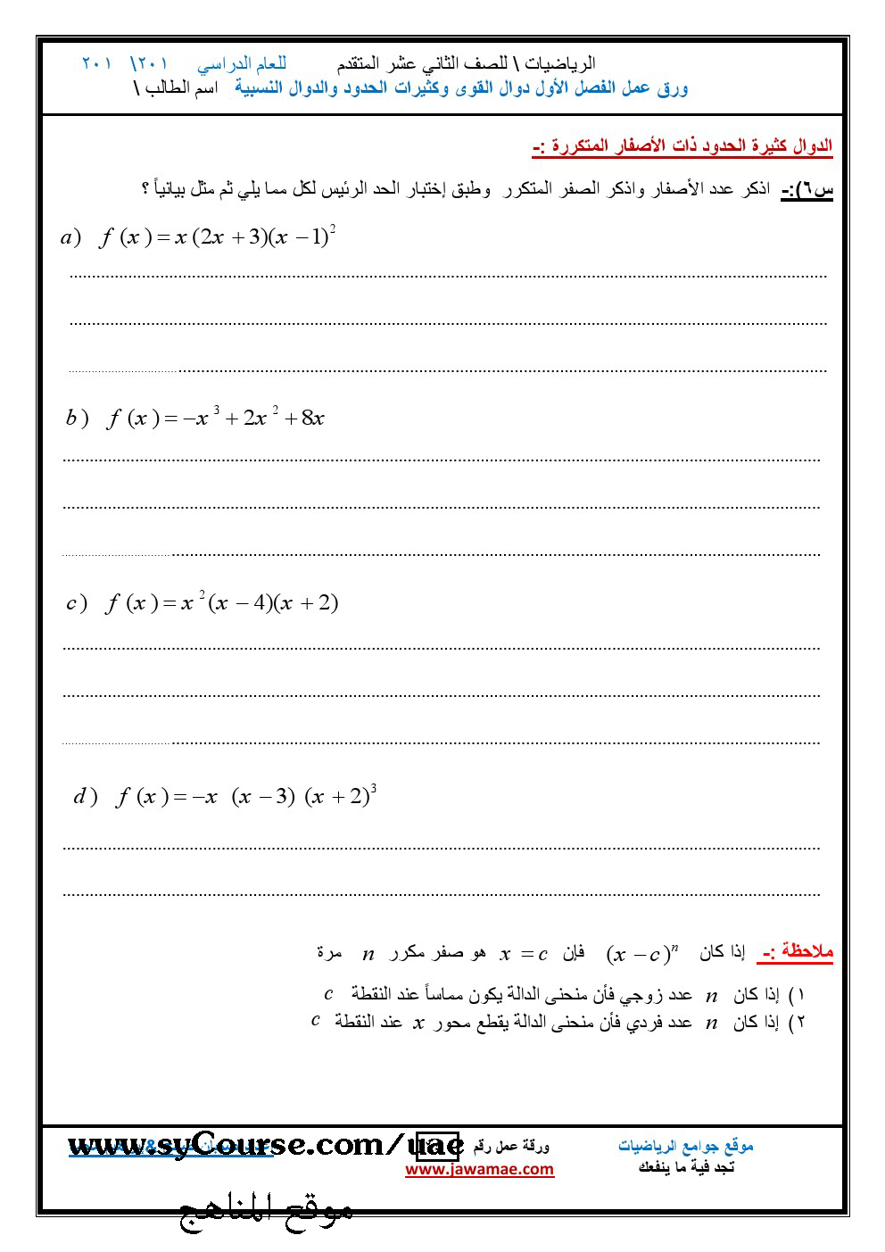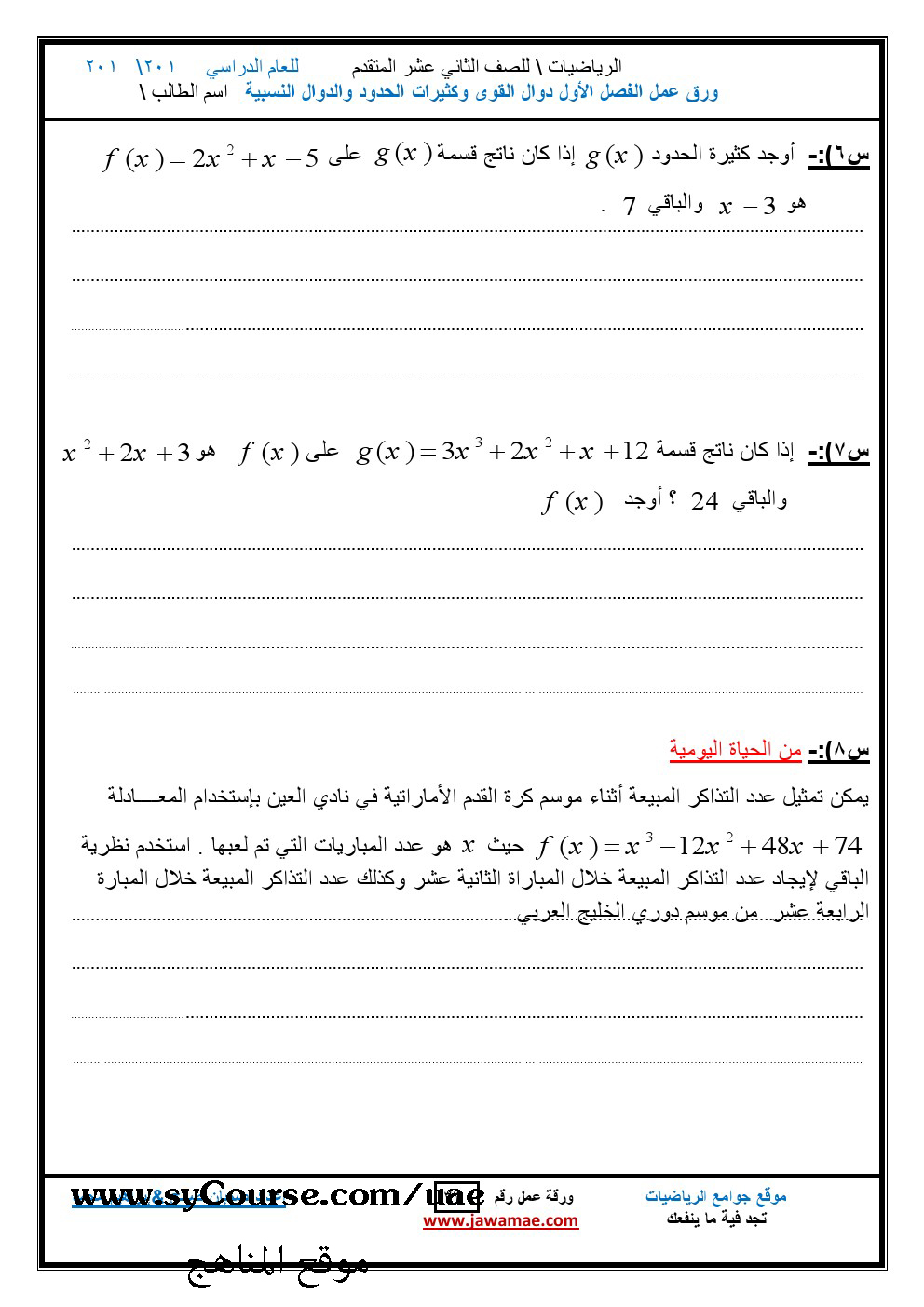 الصف الثاني عشر المتقدم, الفصل الأول, رياضيات, جميع أوراق عمل 2016-2017 لتحميل الملف على شكل كتاب الكتروني اتبع الرابط الاتي: http://upload.sycourse.com/download.php?f=math.pdf