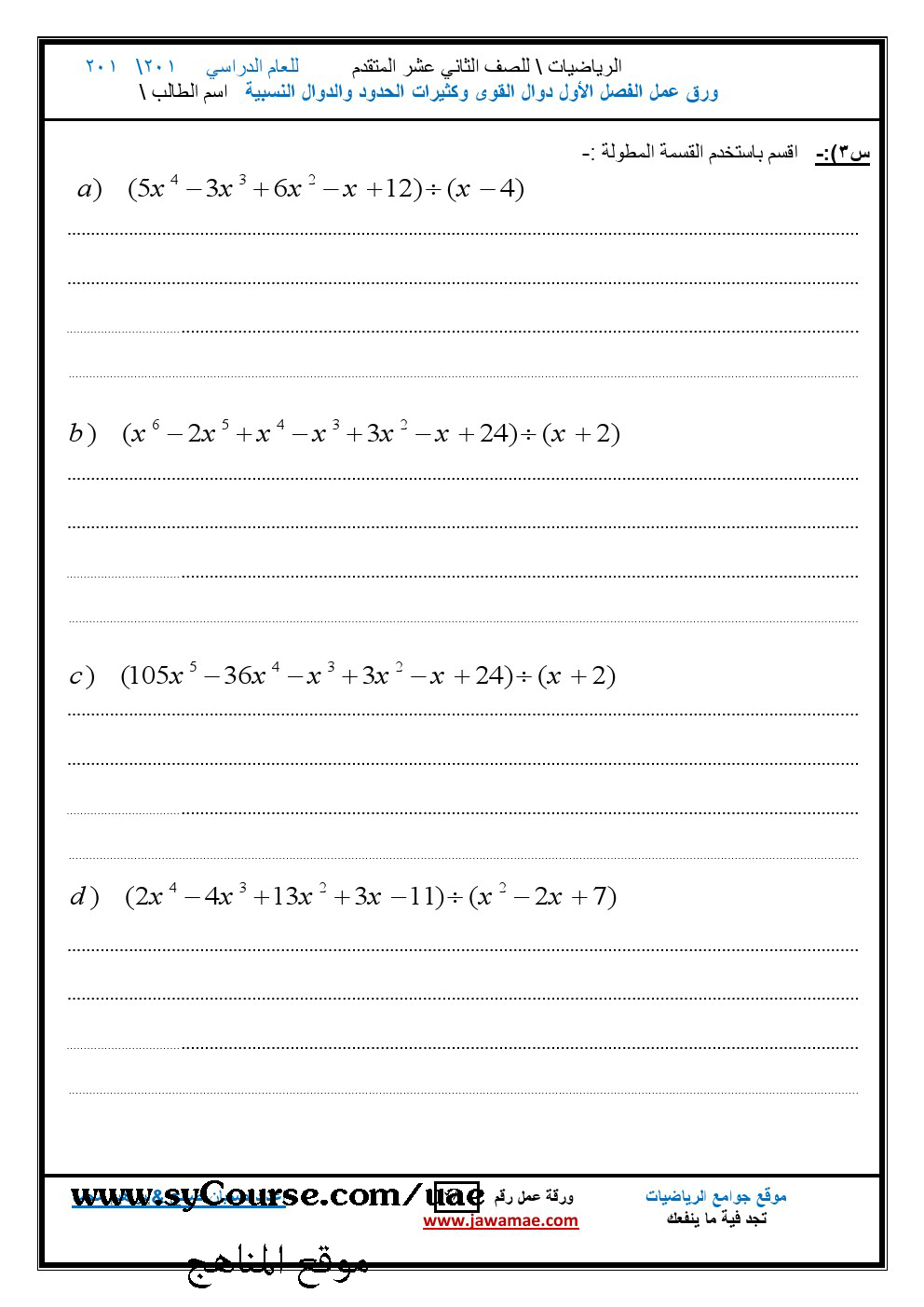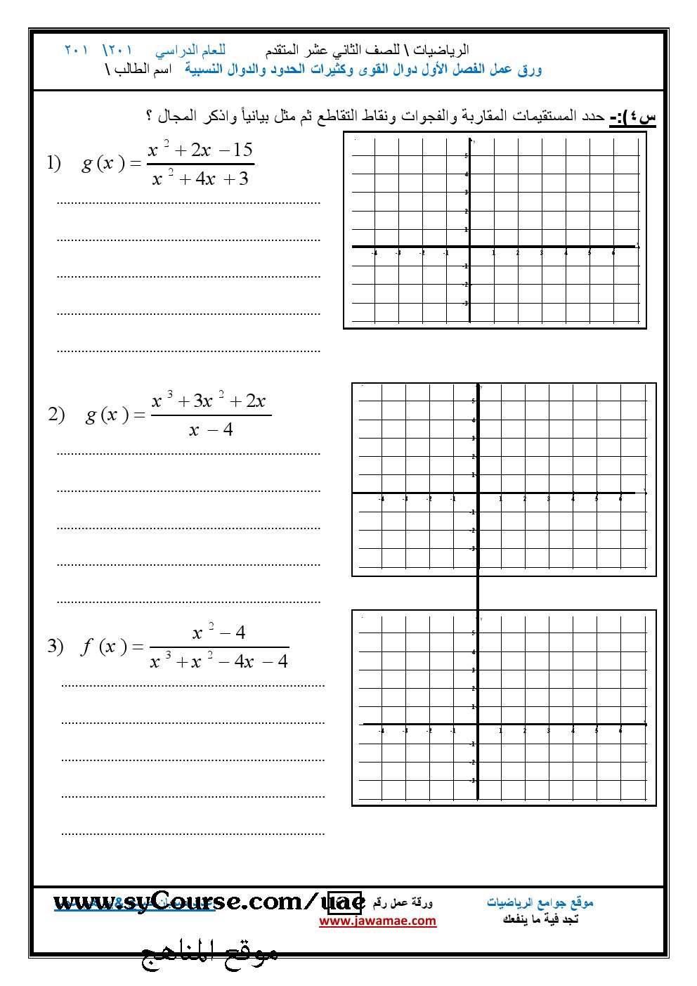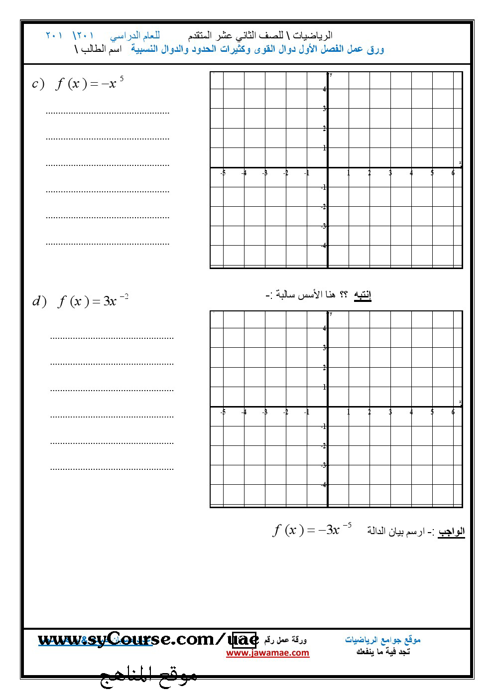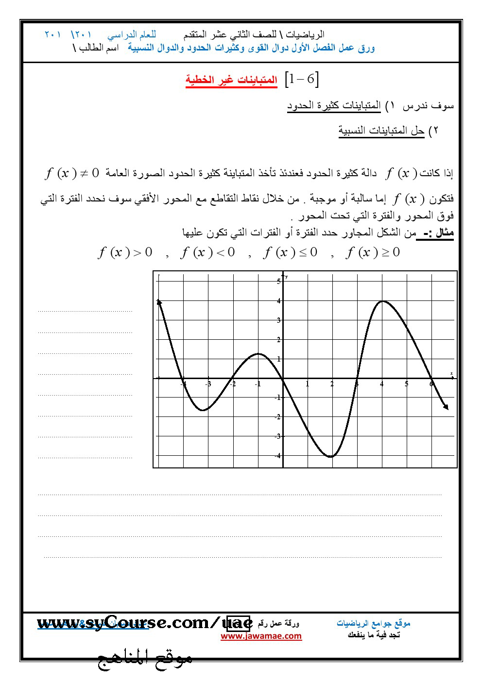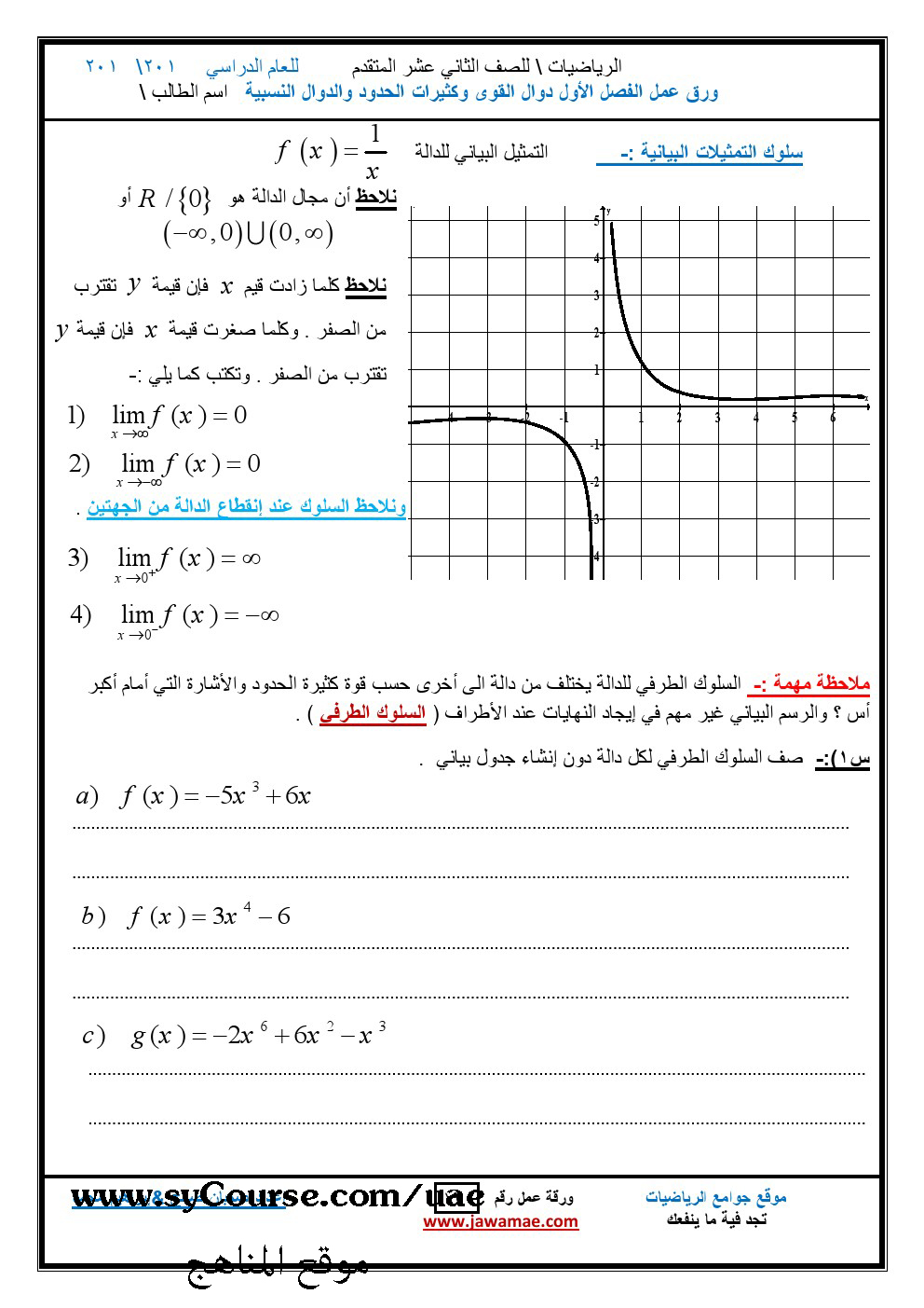 الصف الثاني عشر المتقدم, الفصل الأول, رياضيات, جميع أوراق عمل 2016-2017 لتحميل الملف على شكل كتاب الكتروني اتبع الرابط الاتي: http://upload.sycourse.com/download.php?f=math.pdf