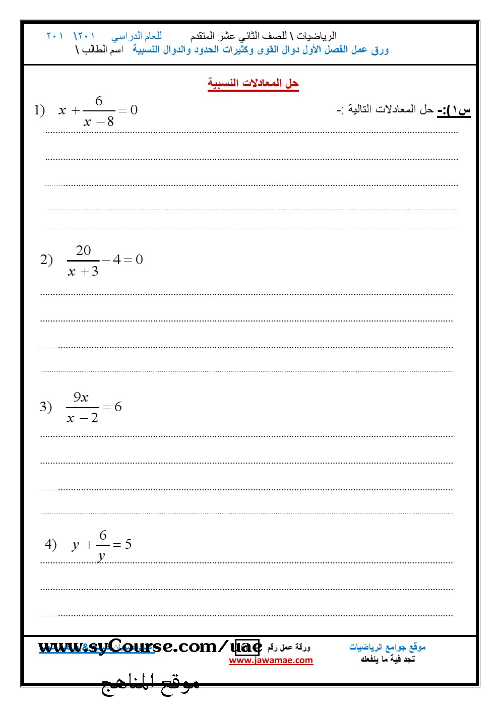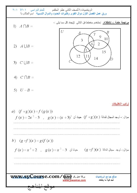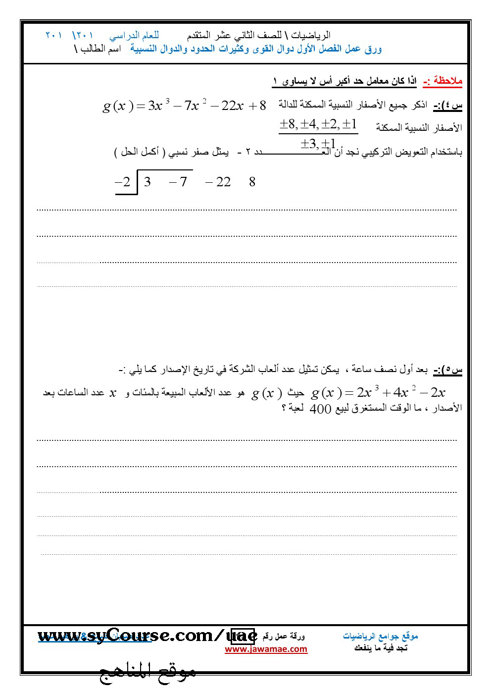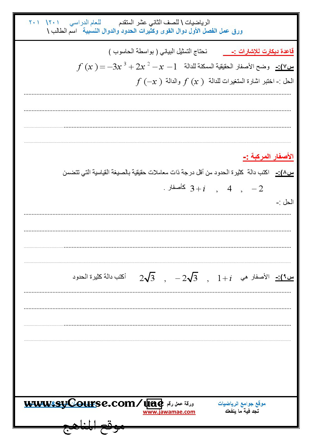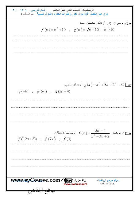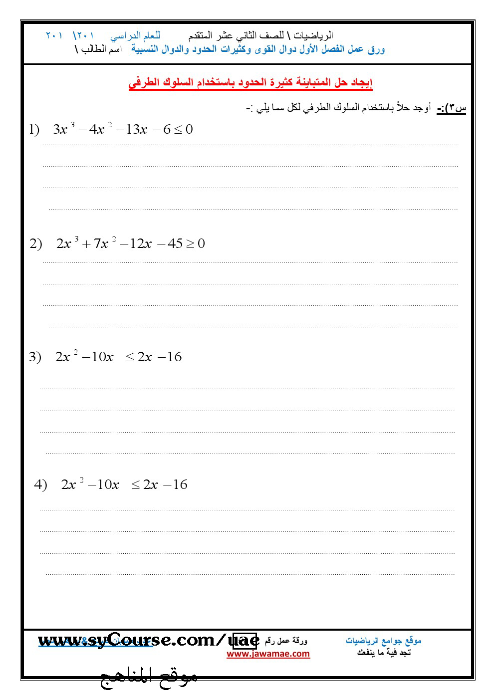 الصف الثاني عشر المتقدم, الفصل الأول, رياضيات, جميع أوراق عمل 2016-2017 لتحميل الملف على شكل كتاب الكتروني اتبع الرابط الاتي: http://upload.sycourse.com/download.php?f=math.pdf