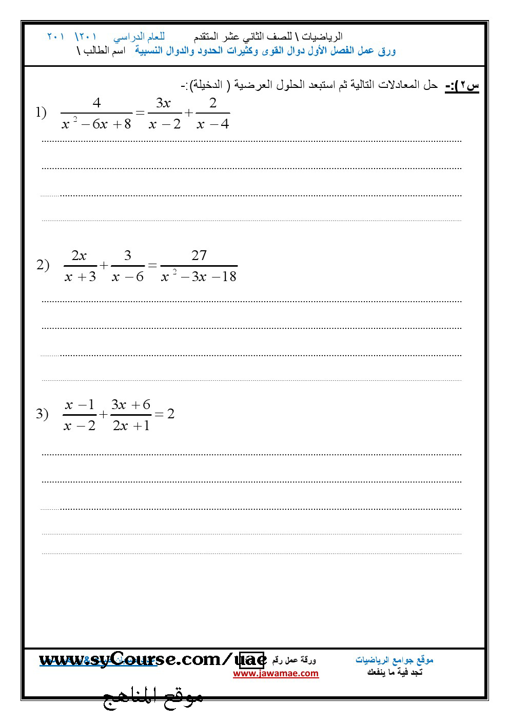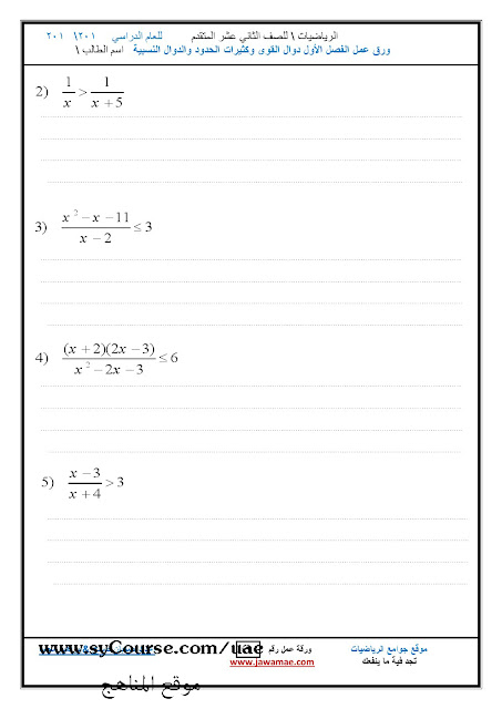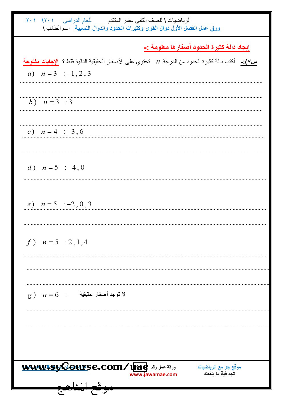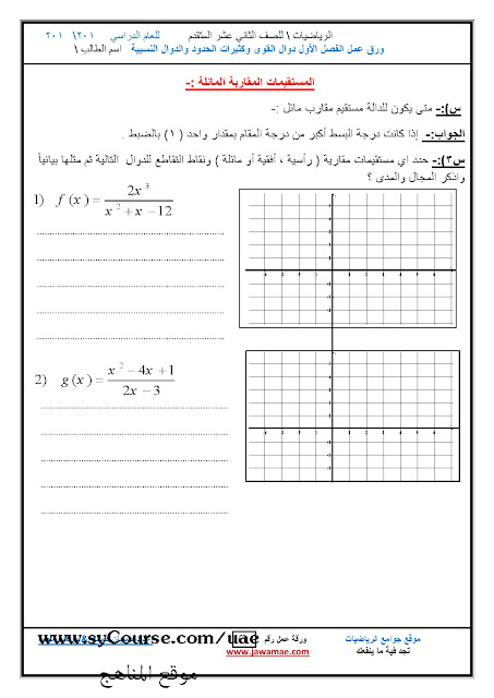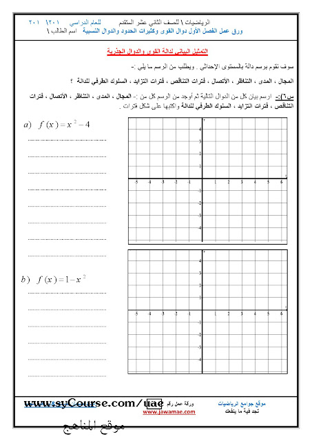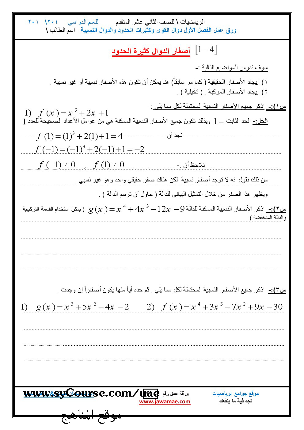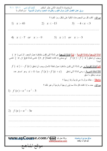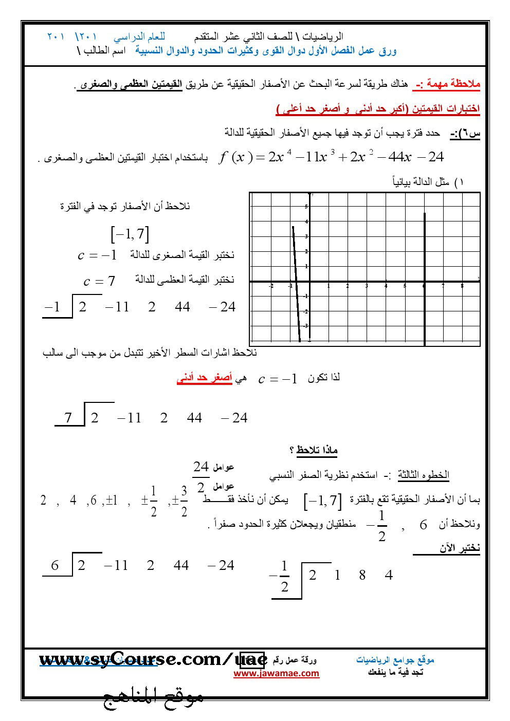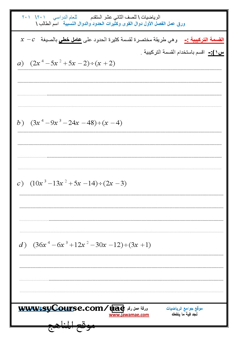 الصف الثاني عشر المتقدم, الفصل الأول, رياضيات, جميع أوراق عمل 2016-2017 لتحميل الملف على شكل كتاب الكتروني اتبع الرابط الاتي: http://upload.sycourse.com/download.php?f=math.pdf